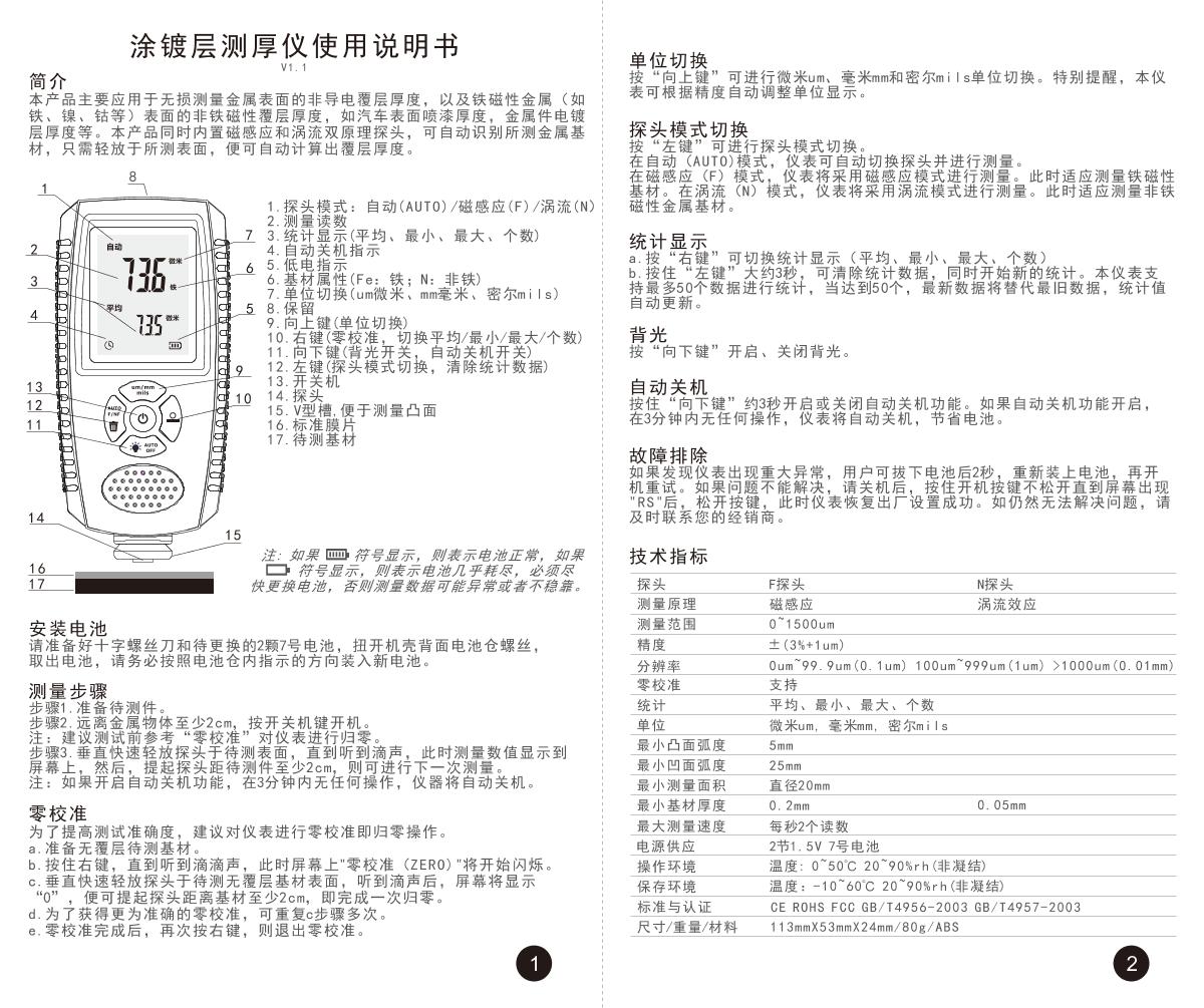 - 1HTechMT CO600FCT+F1S Coating Thickness Gauge brochure