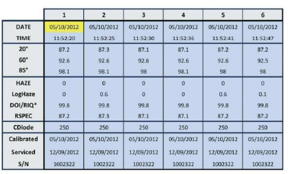 Image quality is measured with the Rhopoint IQ, a handheld surface optical Detector that describes how light reflects from an object's surface. Traditional gloss meters can only measure the amount of reflected light, but cannot measure the impact of imaging quality on sensitivity.