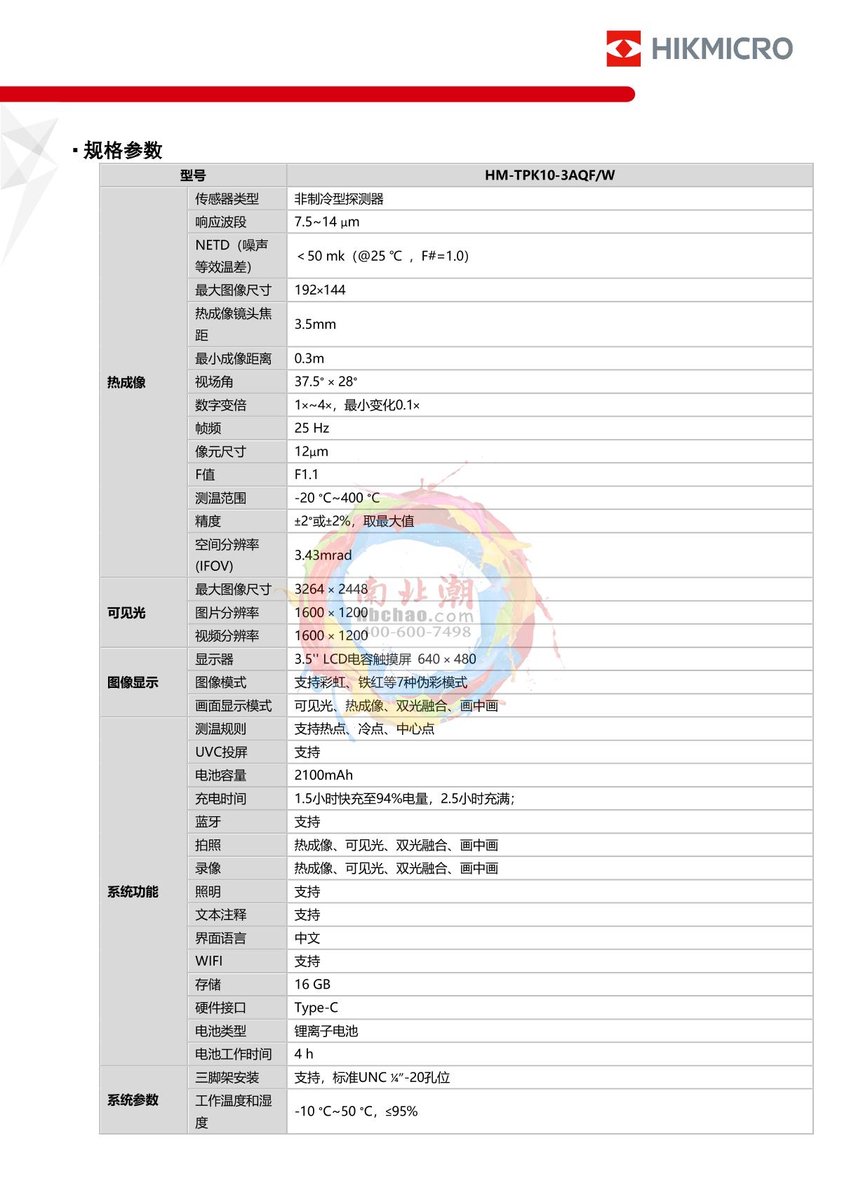 HIKMICRO HM-TPK10-3AQF/W Handheld Thermometer Thermal Imager brochure