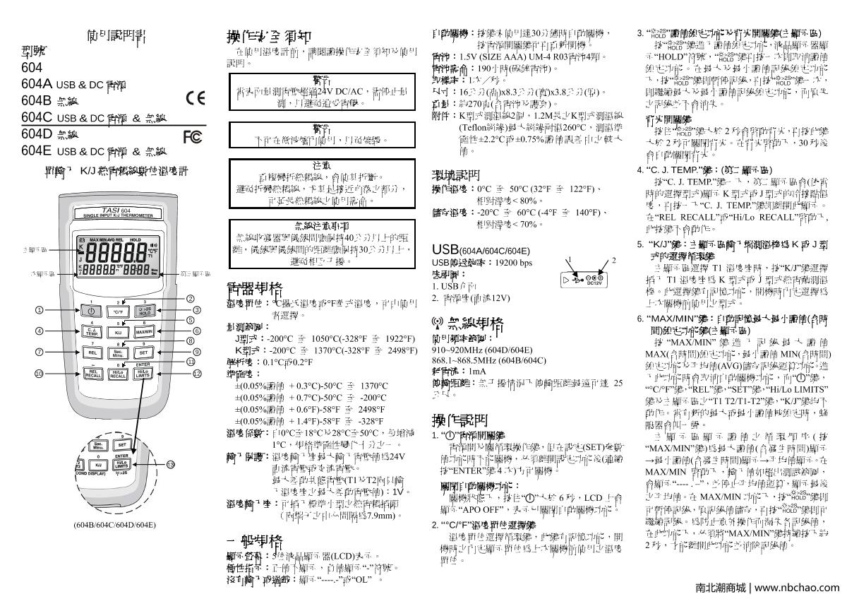 TASI TASI-604A Thermocouple Thermometer Manual,OI