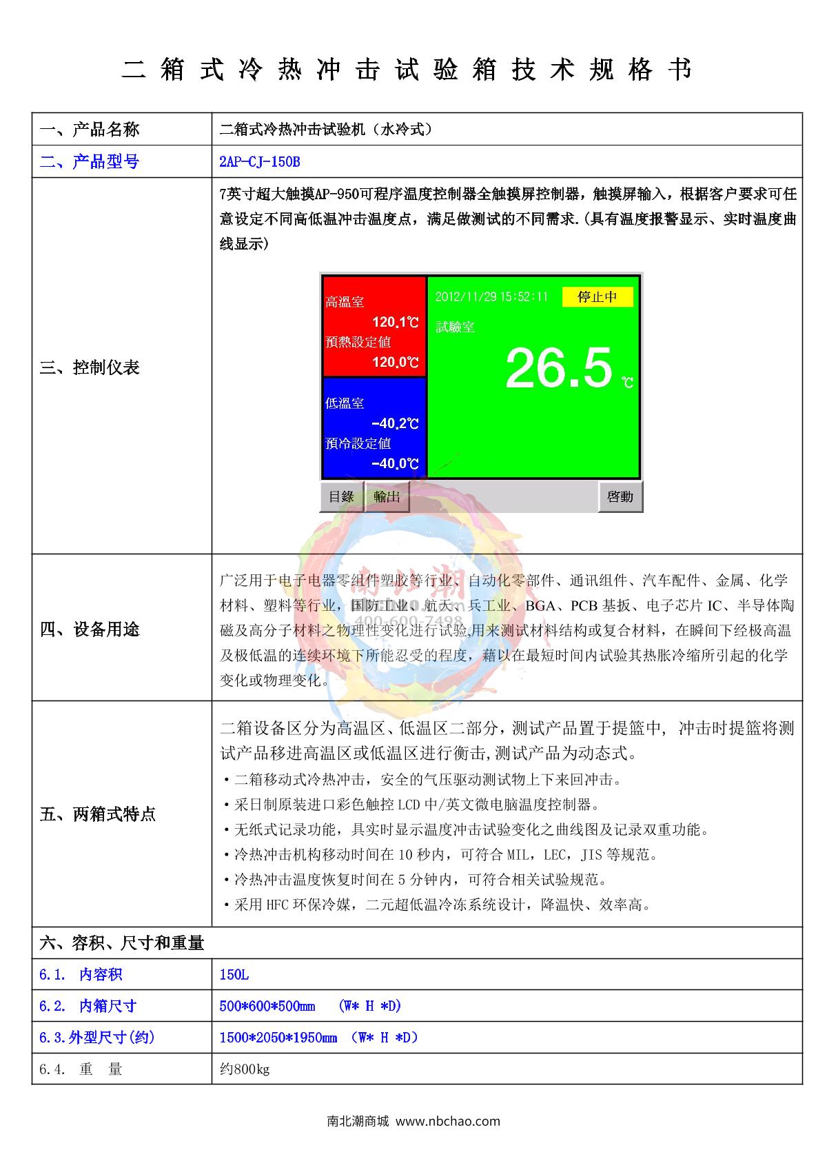 Aipei 3AP-CJ-150A Three-Chamber Thermal Shock Air-Cooled -40 ℃-40 ℃~ + 150 ℃ (air-cooled)±0.5℃±2.0℃¥135000.0SE -