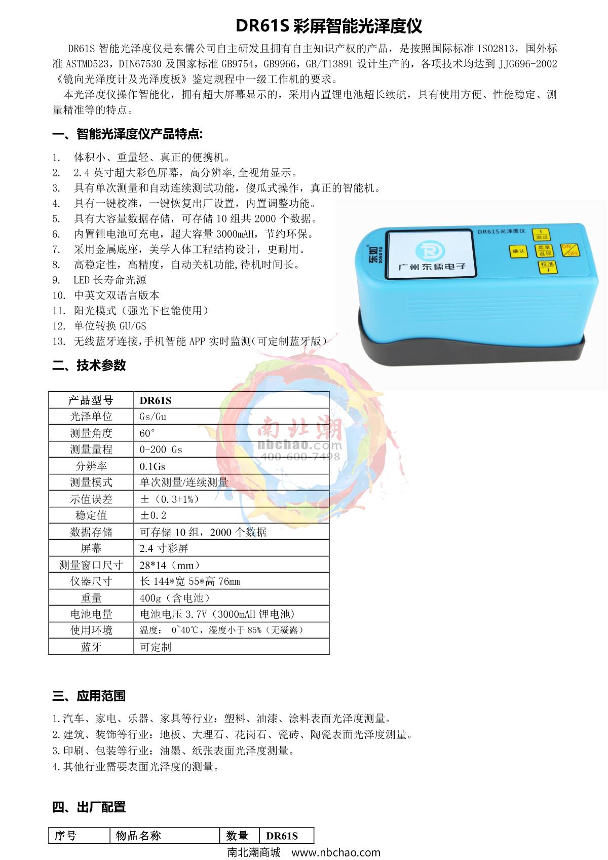 DONGRU DR61 Glossmeter with automatic continuous test function, imported Light source60°0~199.9Gs<1.2GU¥900.0SE -