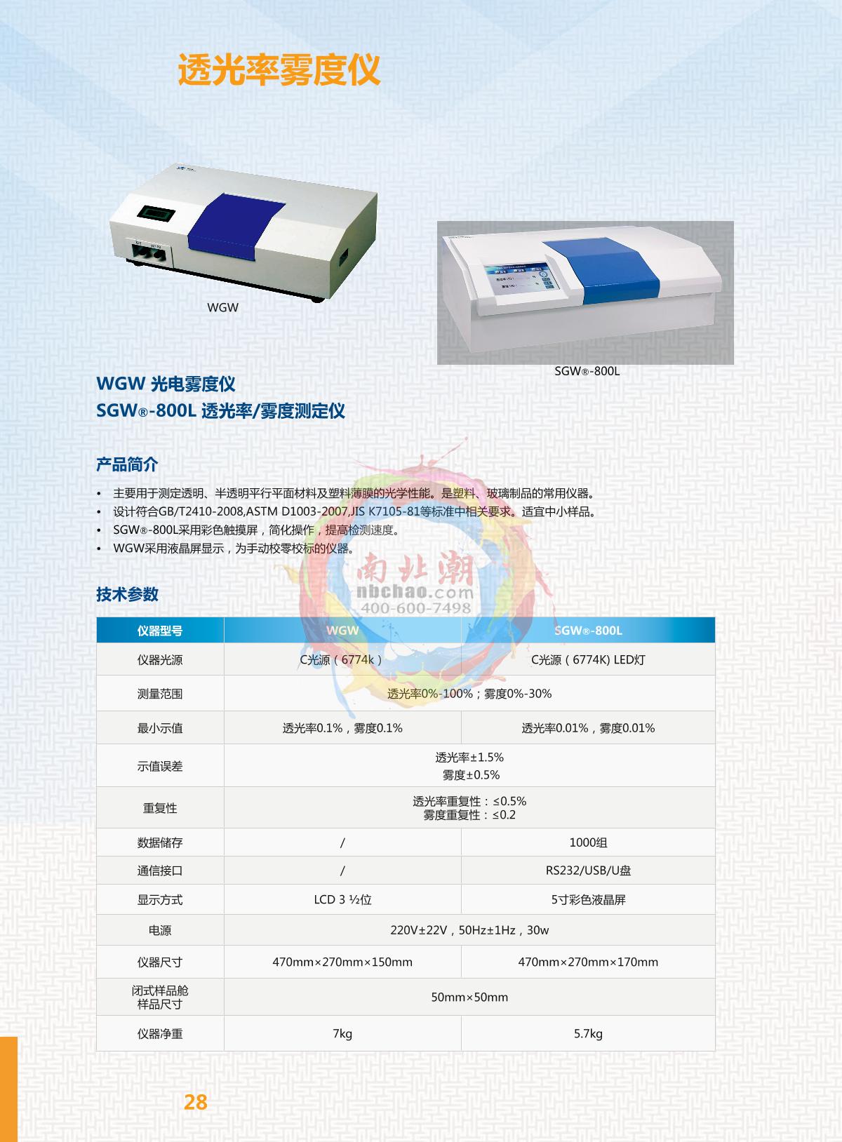 INESA SGW-800L Light transmitance/haze meter brochure