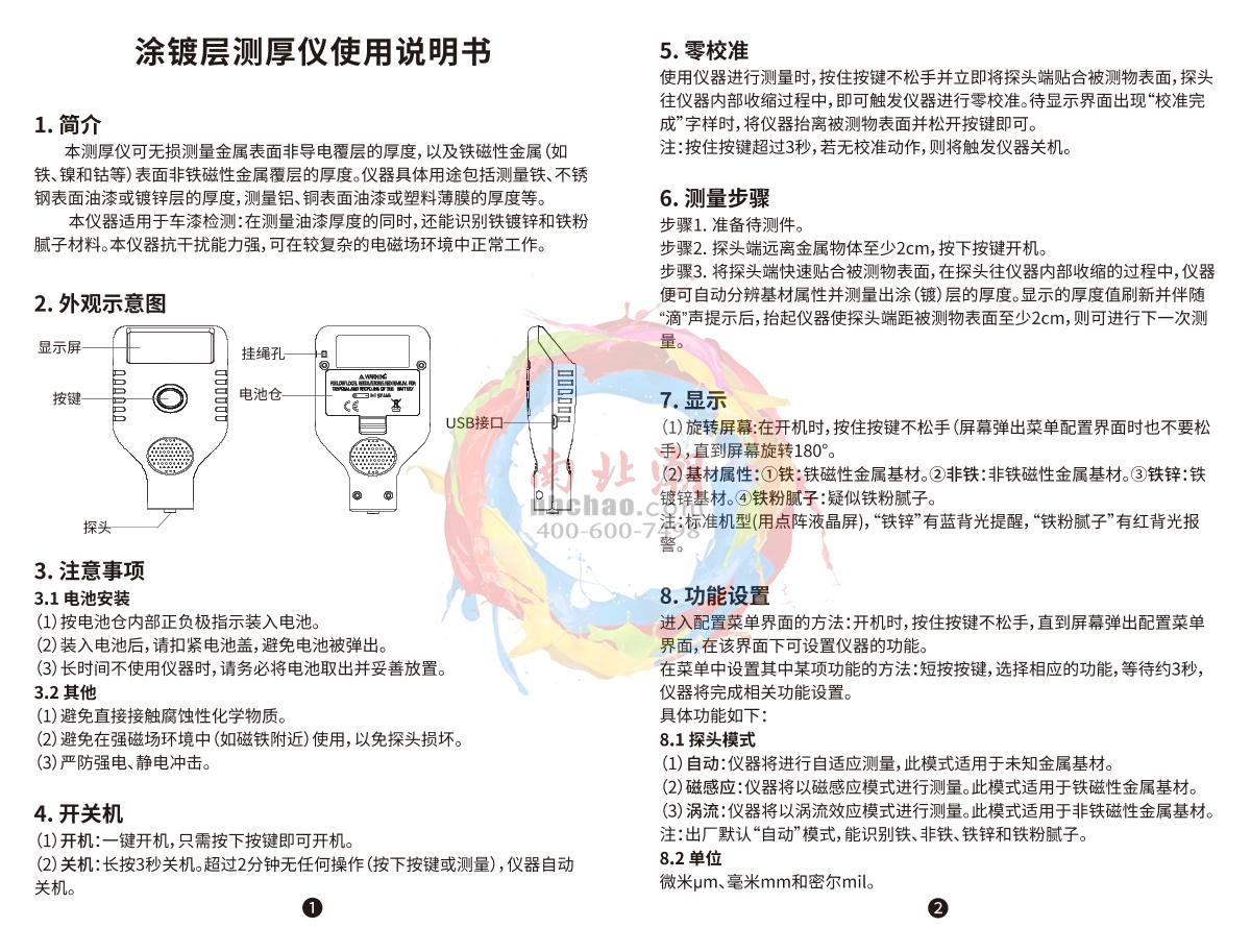 - 8HTechMT CO600F2R Coating Thickness Gauge Manual