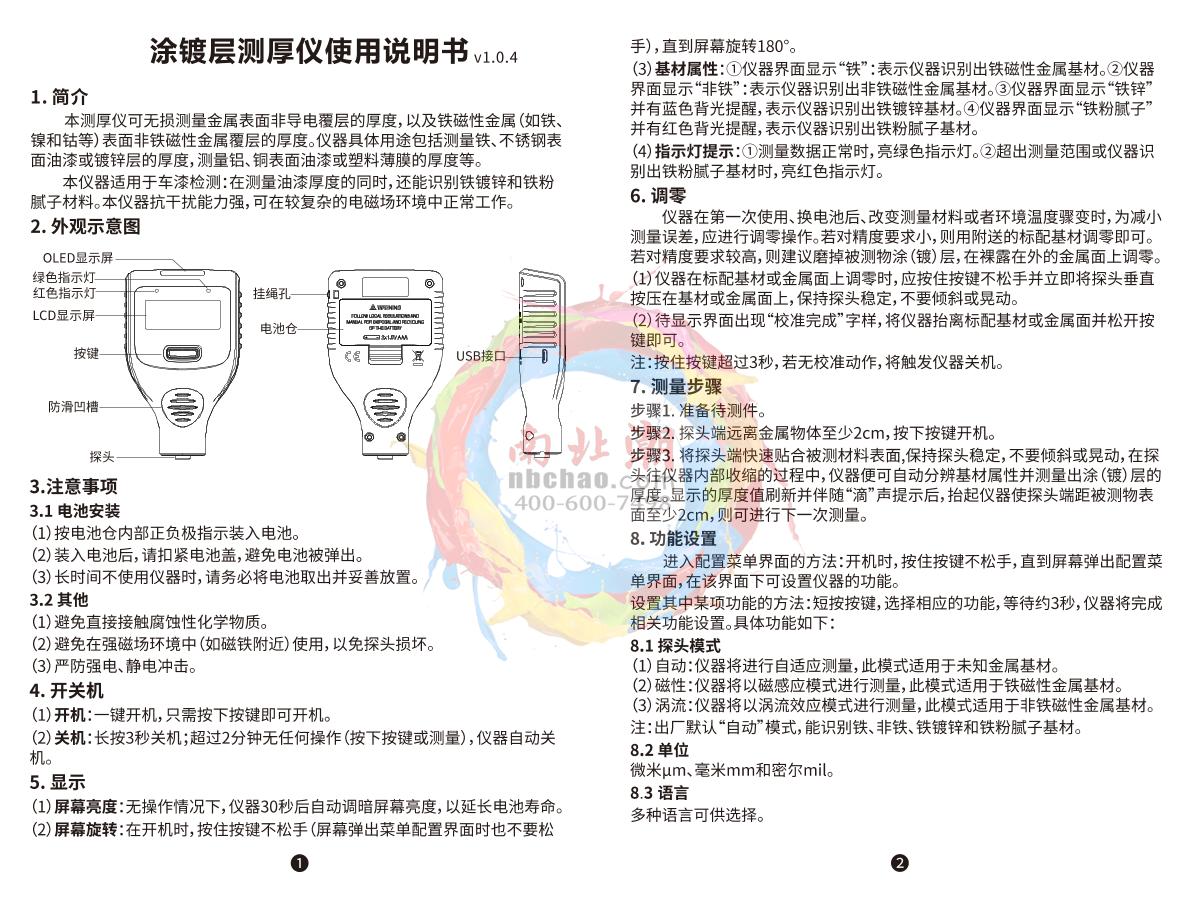 - 2YiBai CTG-800-3000FN Integrated dual-use Standard Coating Thickness Gauge brochure