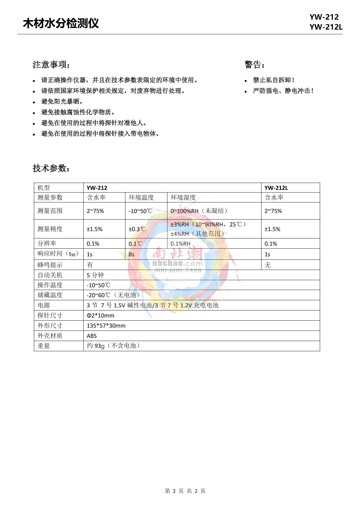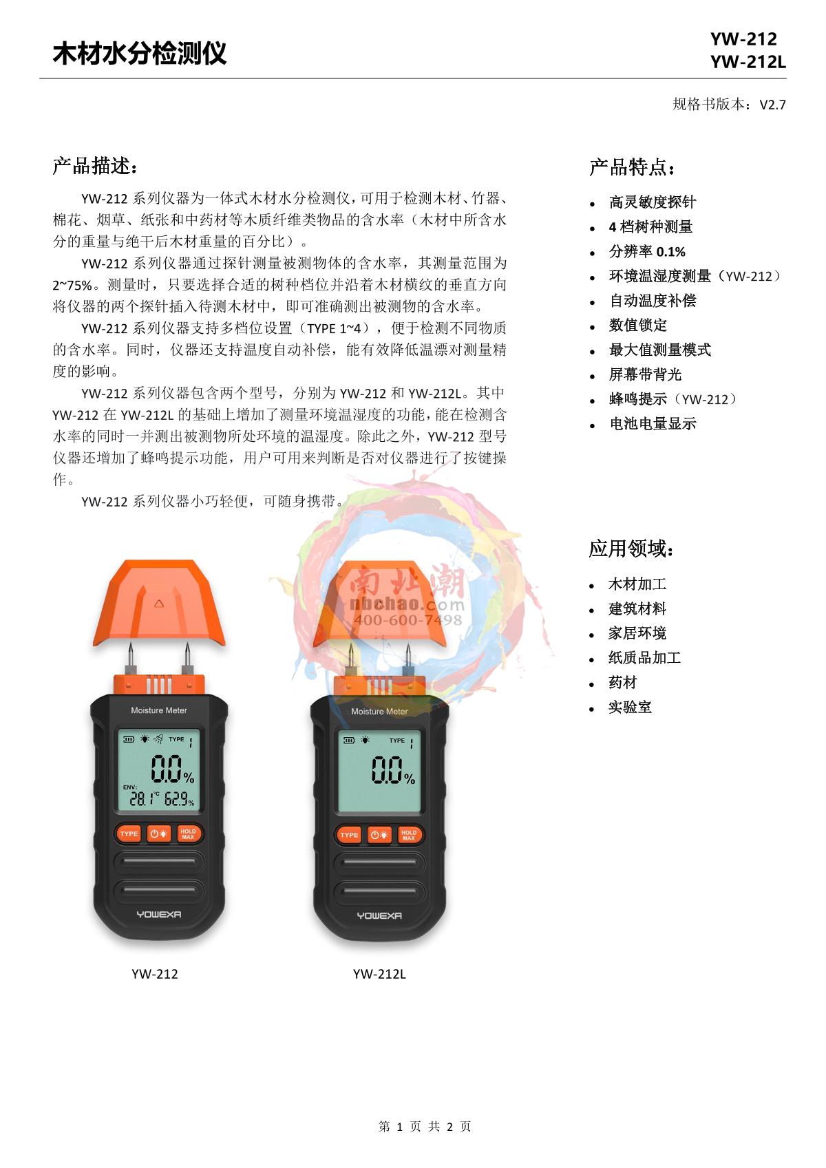 YOWEXA YW-212L Wood Humidity Meter brochure