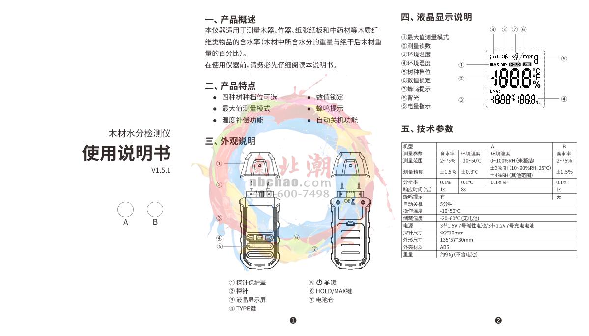 TSINGTAO TOKY MS7100TS Wood Moisture Analyzer 3~ 80%Large screen LCD digital display with backlight3~80%0.1¥530.0SE -