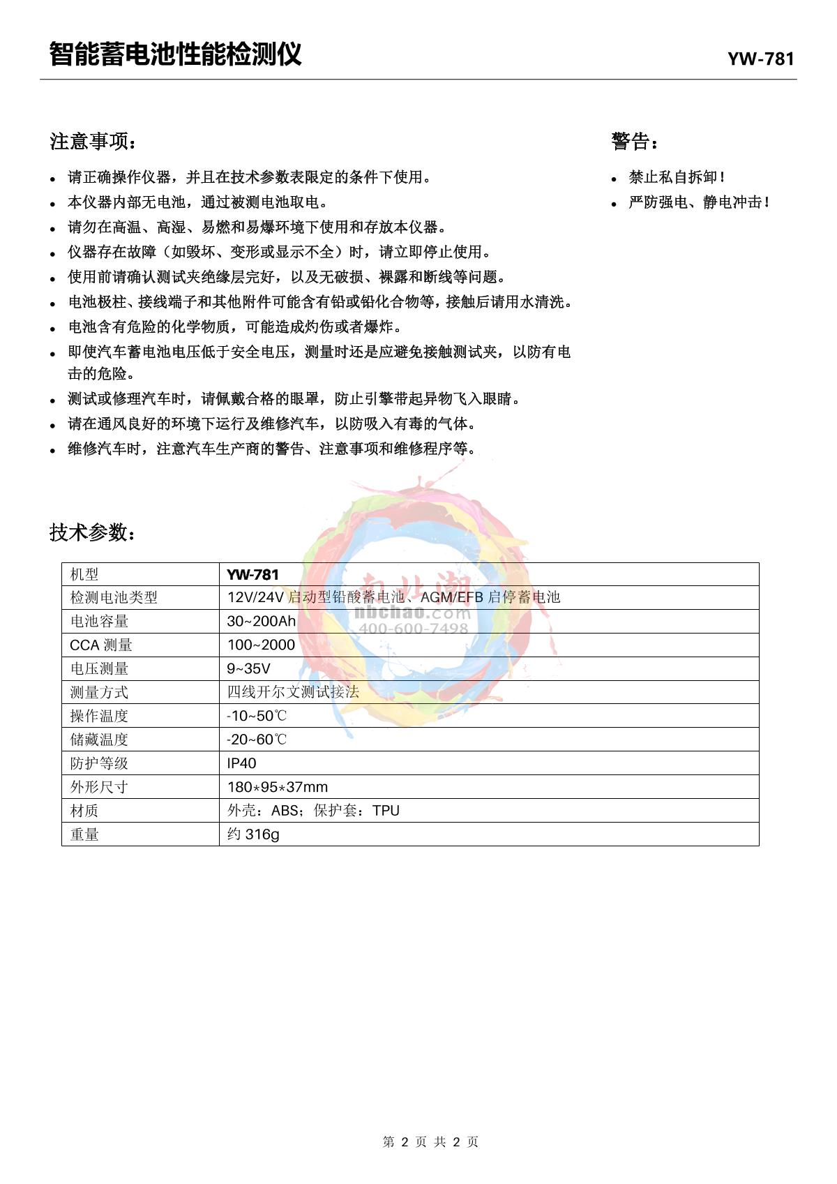 YOWEXA YW-781-A-C Intelligent battery performance Tester brochure