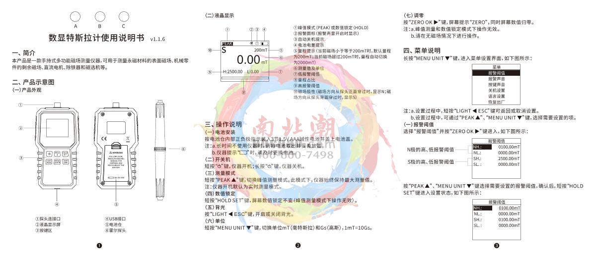 YOWEXA YW-821-H-C Digital Tesla meter Manual,OI