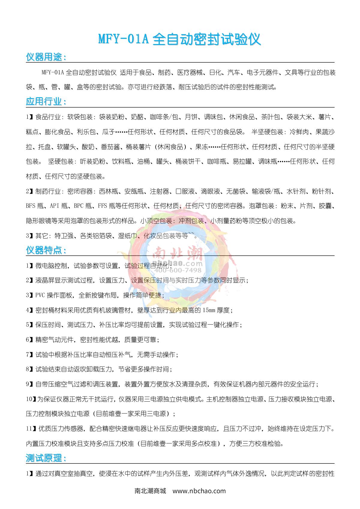 - 8Factory NBC-MFY02 Vacuum sealing performance Tester brochure
