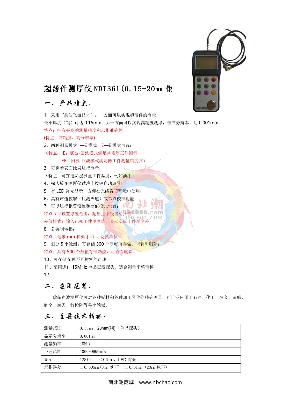 KairDa NDT361 (0.15-20 mm steel) Ultra-thin part Thickness Gauge brochure