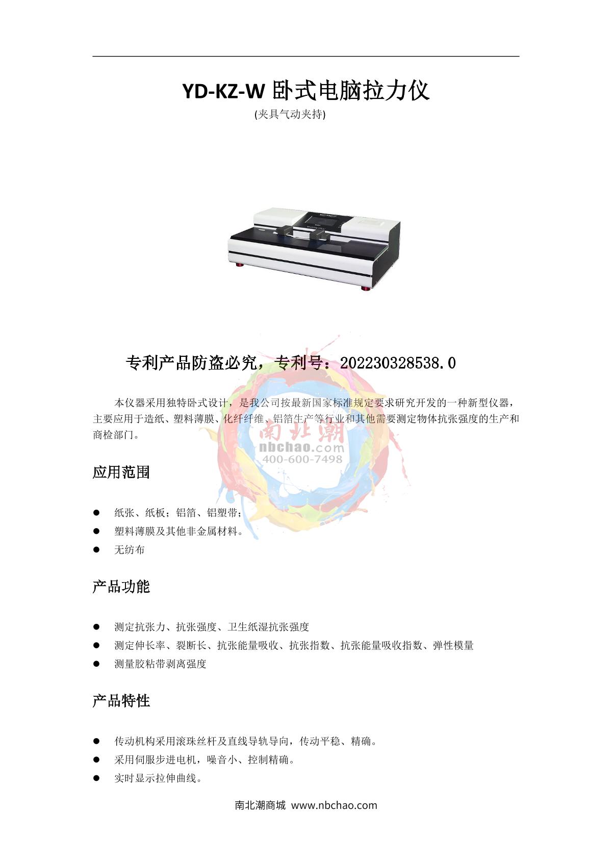 YunDa YD-KZ-WL30 Horizontal Tensile Strength Tester (7 inch screen) brochure