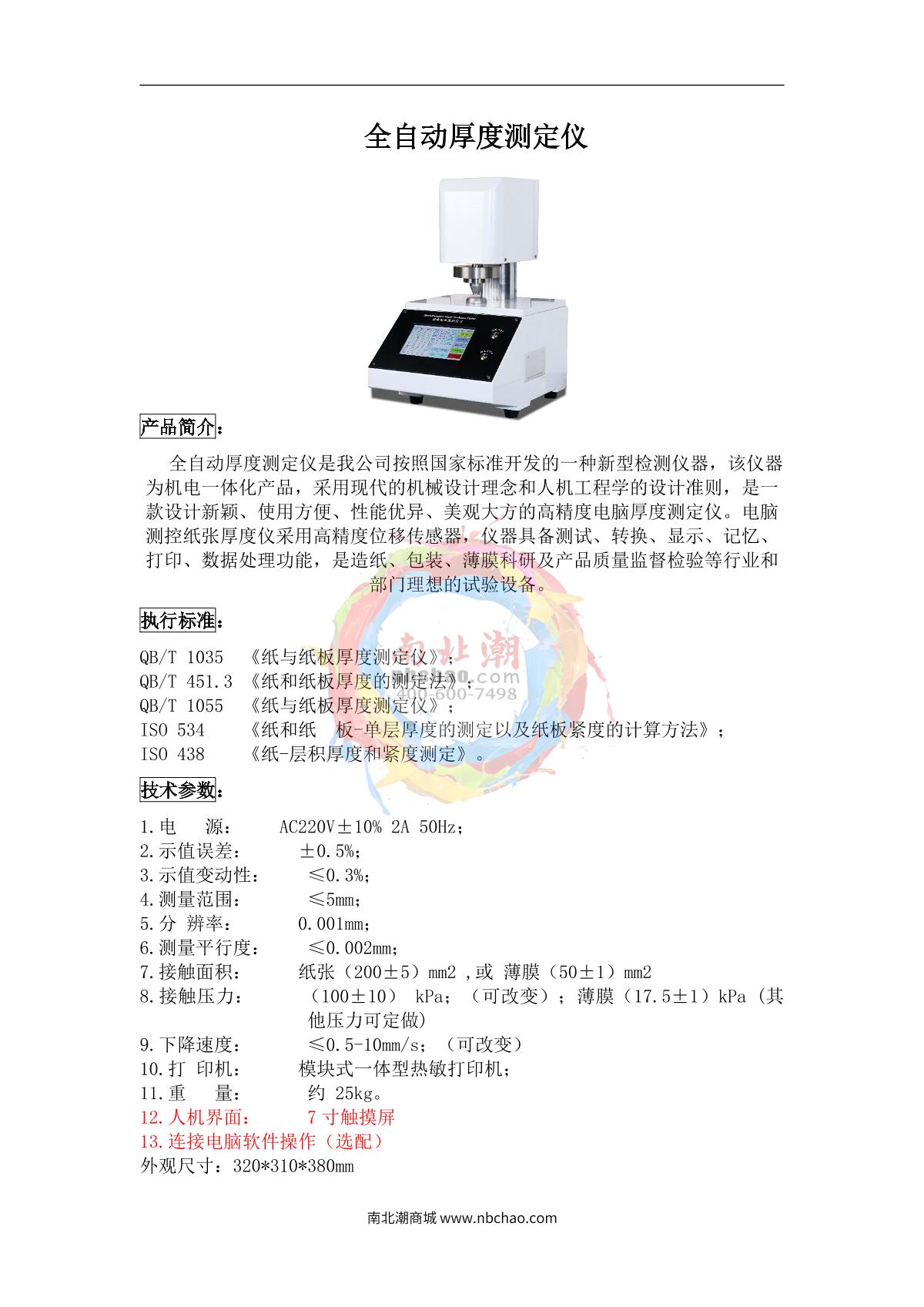 YunDa YD-HD-Z Automatic Thickness testing instrument (7 inch screen) brochure