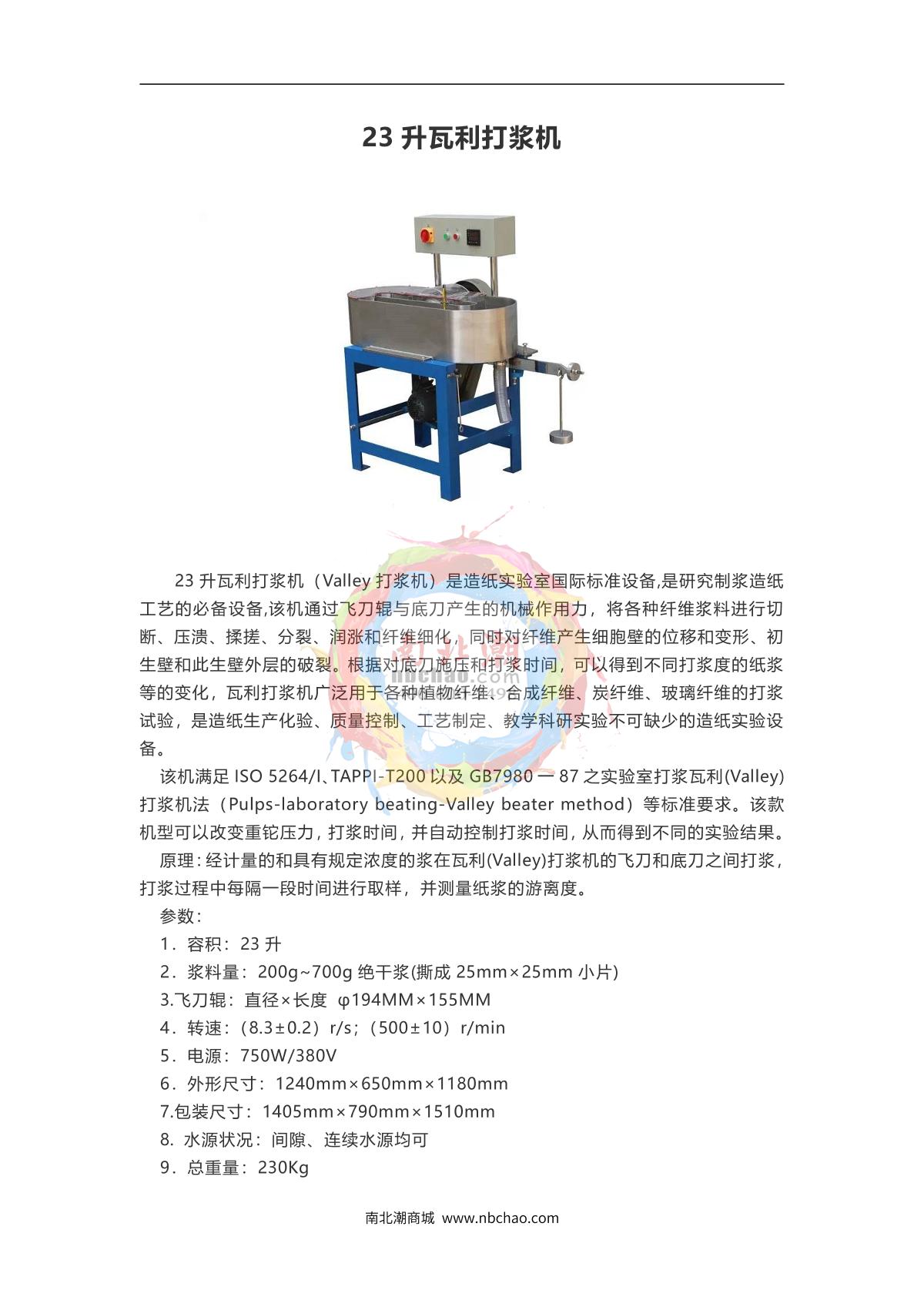 Taichang TC-WDY23 Valley Freeness Tester Valley Freeness Tester23 liters200G~ 700g absolute dry pulp (torn into 25mm × 25mm pieces)Diameter × length φ194MM × 155MM¥24850.0SE -