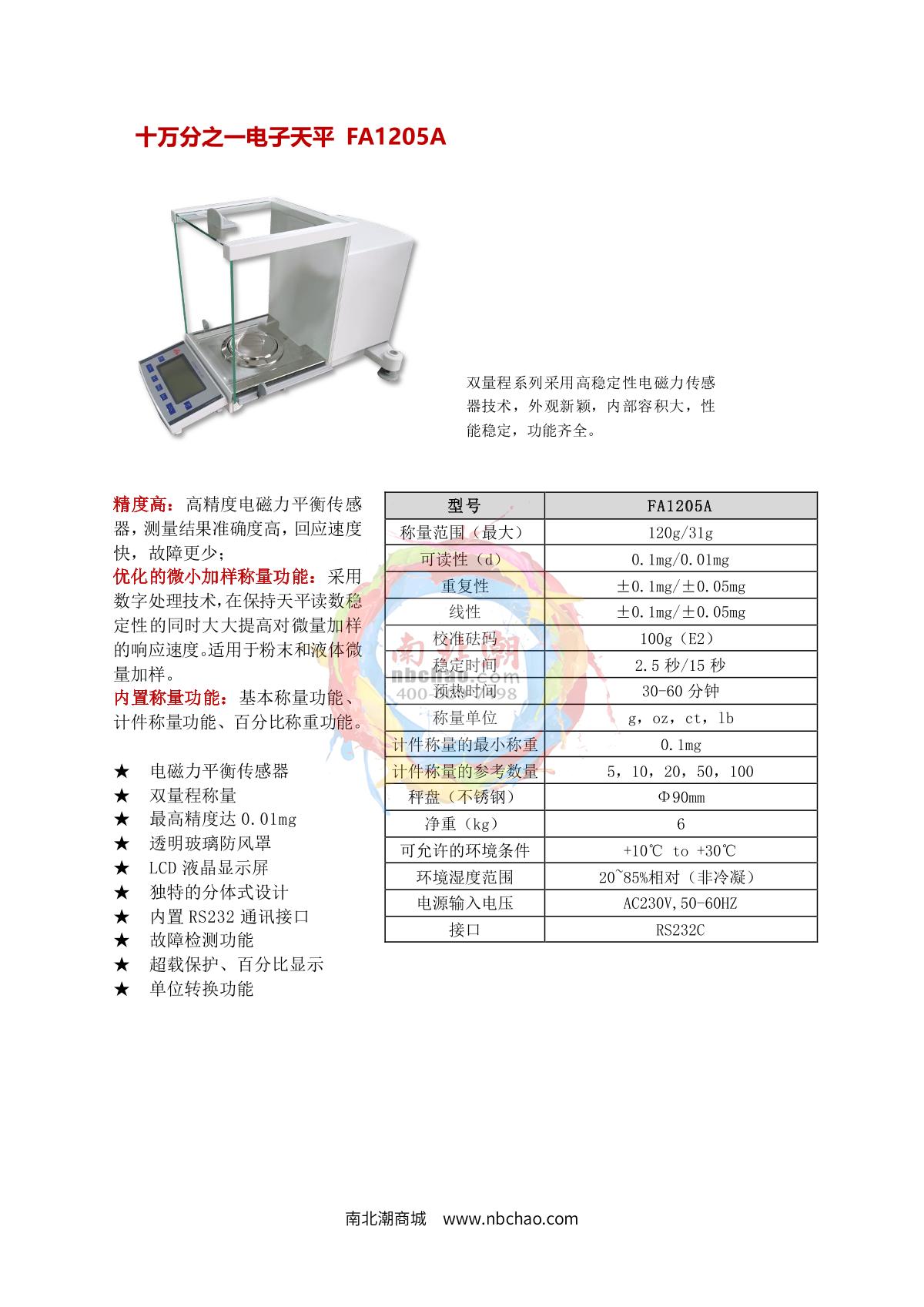 TianMa FA1205A 1/100,000 Electronic Balance brochure