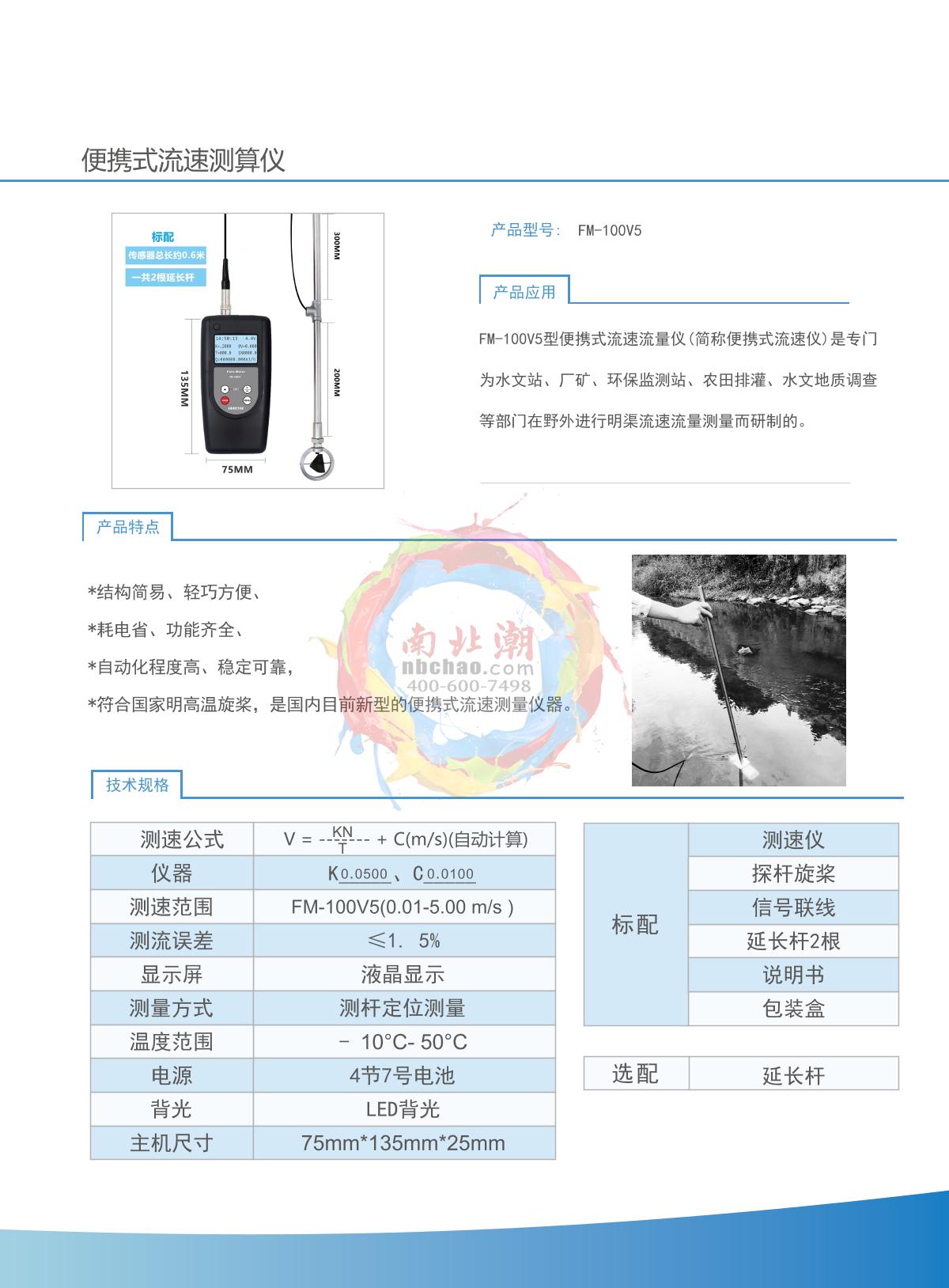 LANDTEK FM-100V5 Flow velocity calculator brochure