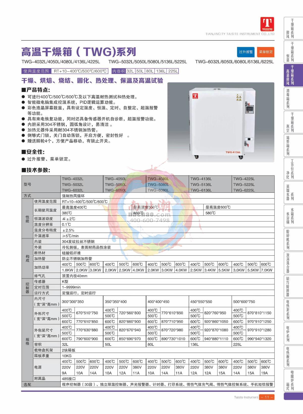 TaiSiTe TWG-4080L (with program mode) High temperature Drying Oven brochure