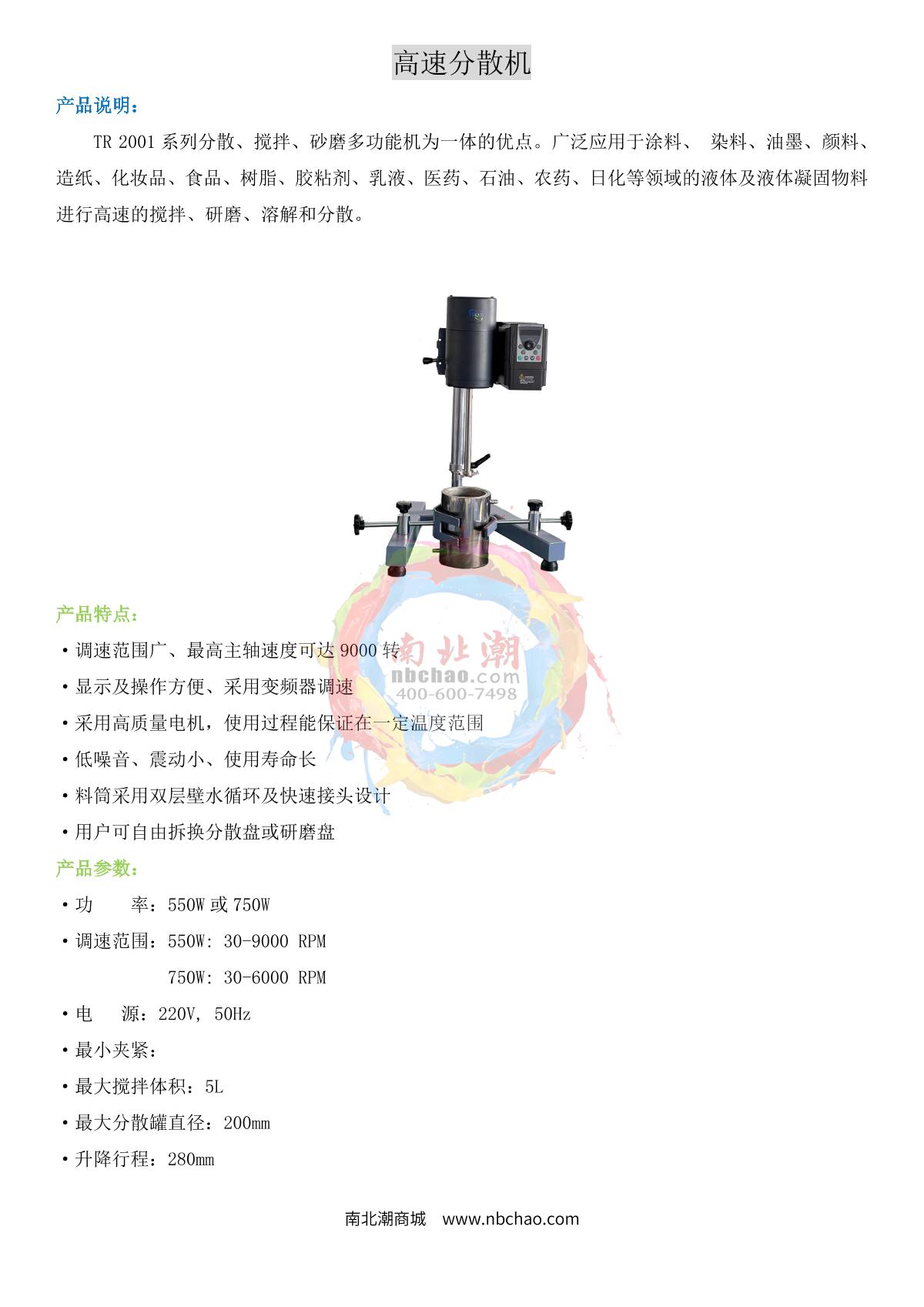 TRUIT TR 2001/7 High Speed Disperser brochure