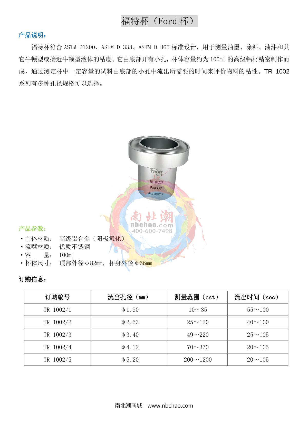 - 5Pushen Ford-2# Ford Viscosity Cup with bracket brochure
