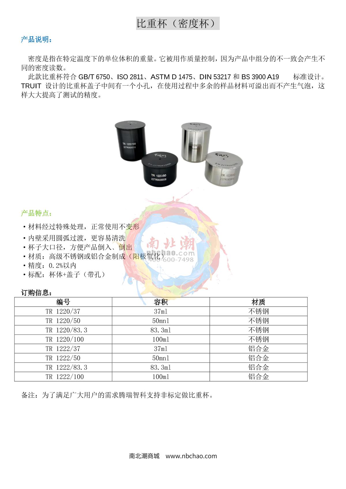 - 9TRUIT TR 1220 / 100 Stainless Steel Specific Gravity Cup brochure