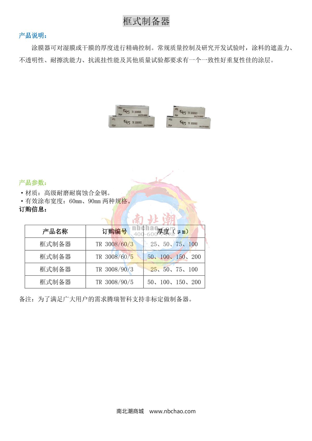 TRUIT TR 3008/60/3 Film Applicator 25/50/75/100μm60mm25/50/75/100μmwear-resistant and corrosion-resistant alloy steel¥630.0SE -