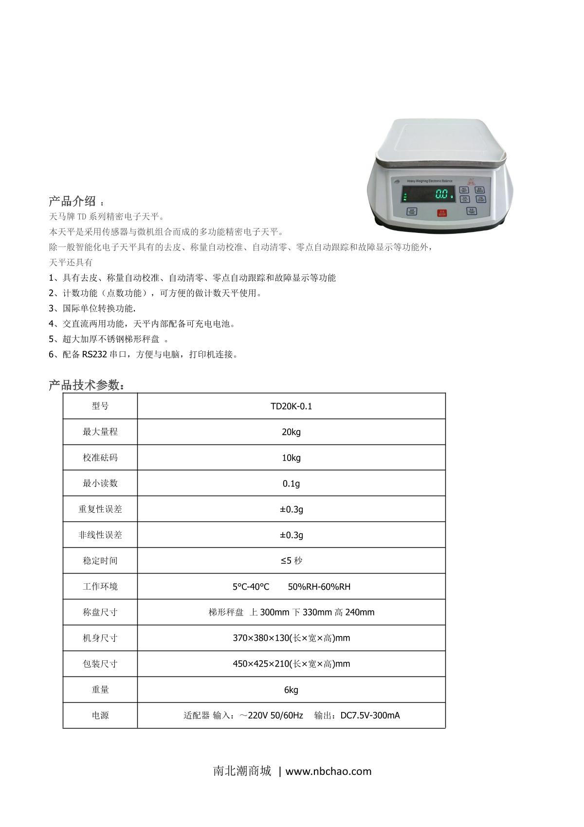 TianMa TD20K-0.1 TD Series Electronic Balance brochure