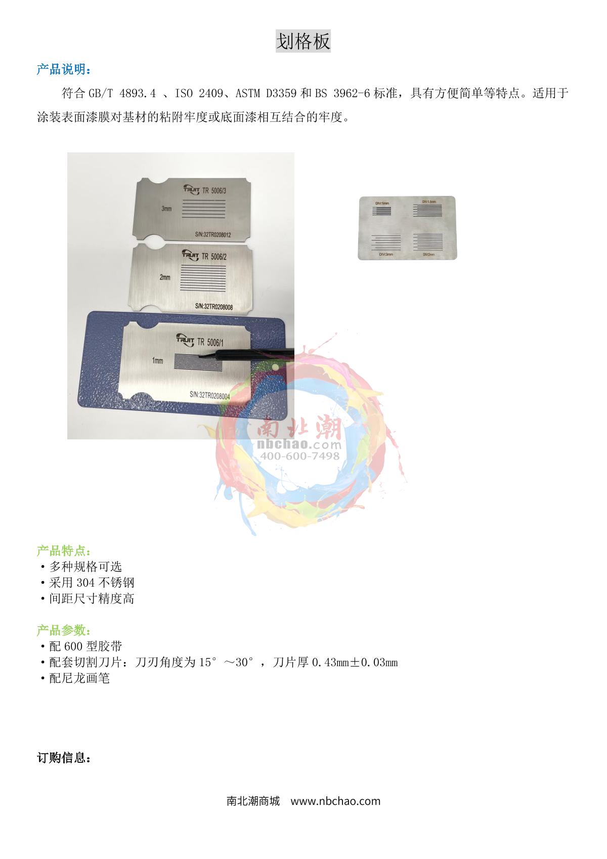 TRUIT TR 5001/4 Single Sided Cross Hatch Cutter 2mm/6 Tooth6 teeth2mmFilm thickness 61μm~ 120μm hard substrate or thickness < 120μm soft substrate (wood, plastic)¥480.0SE