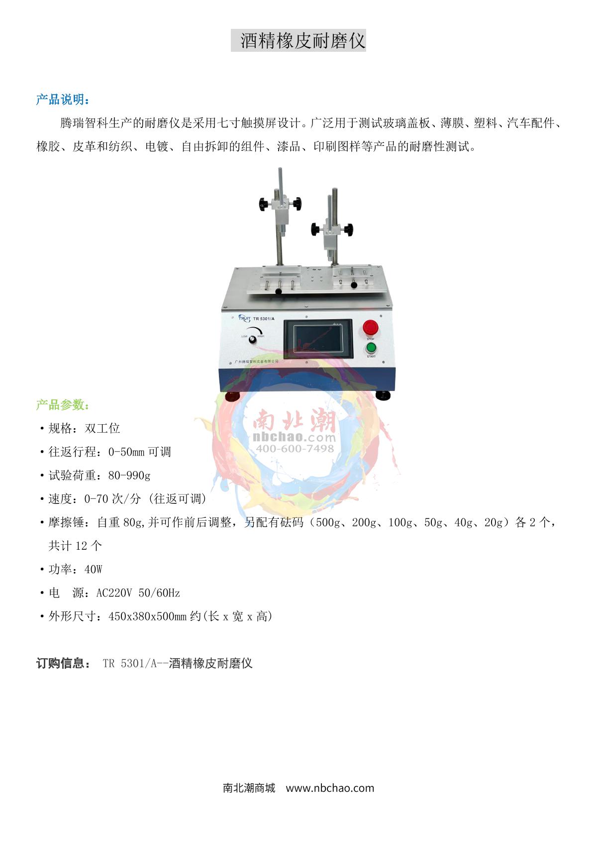 TRUIT TR 5301/A Alcohol Rubber Wear Tester, Wear Tester, Touch Screen, Double StationDouble station0-50Mm adjustable80-990g¥4650.0SE -