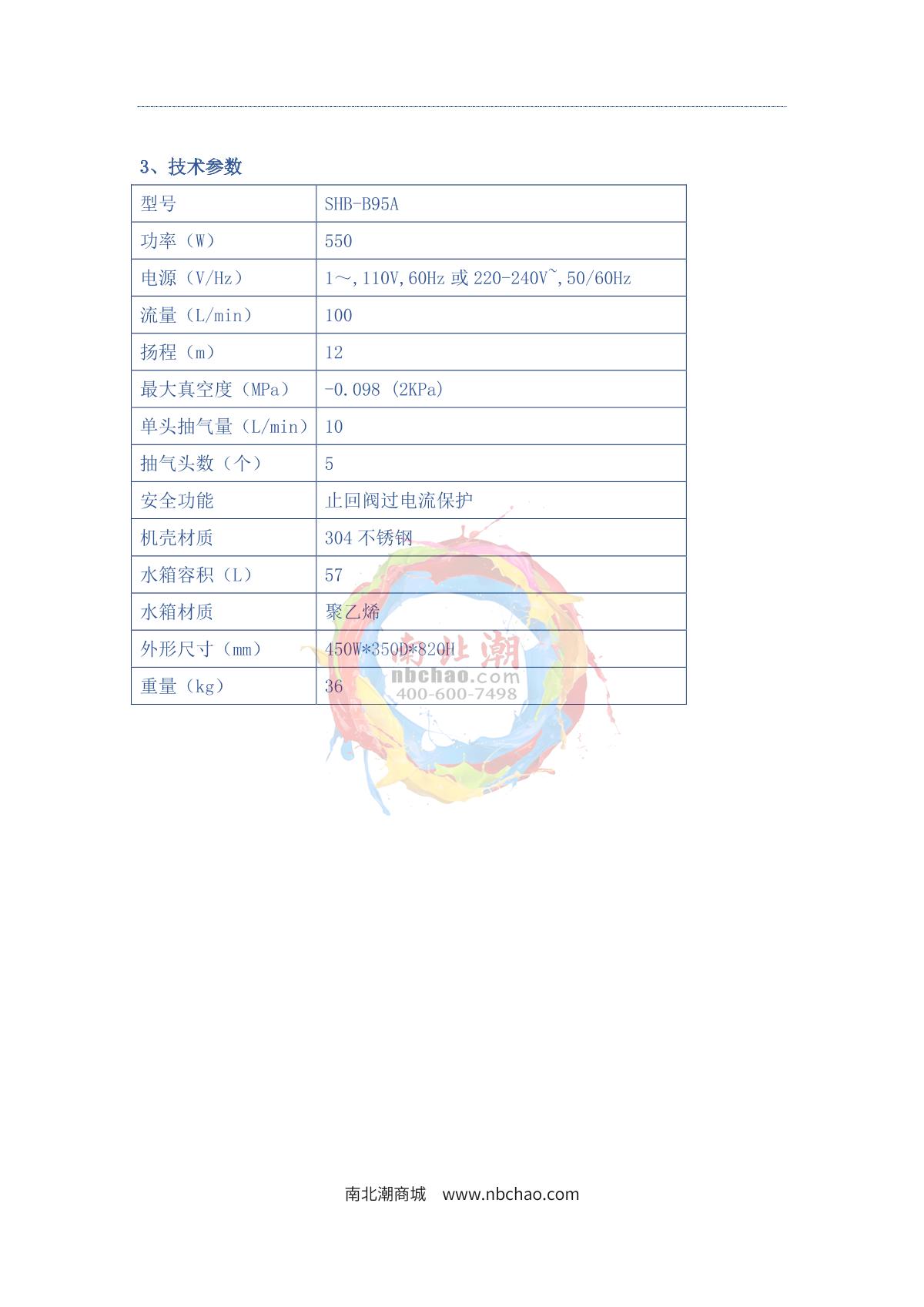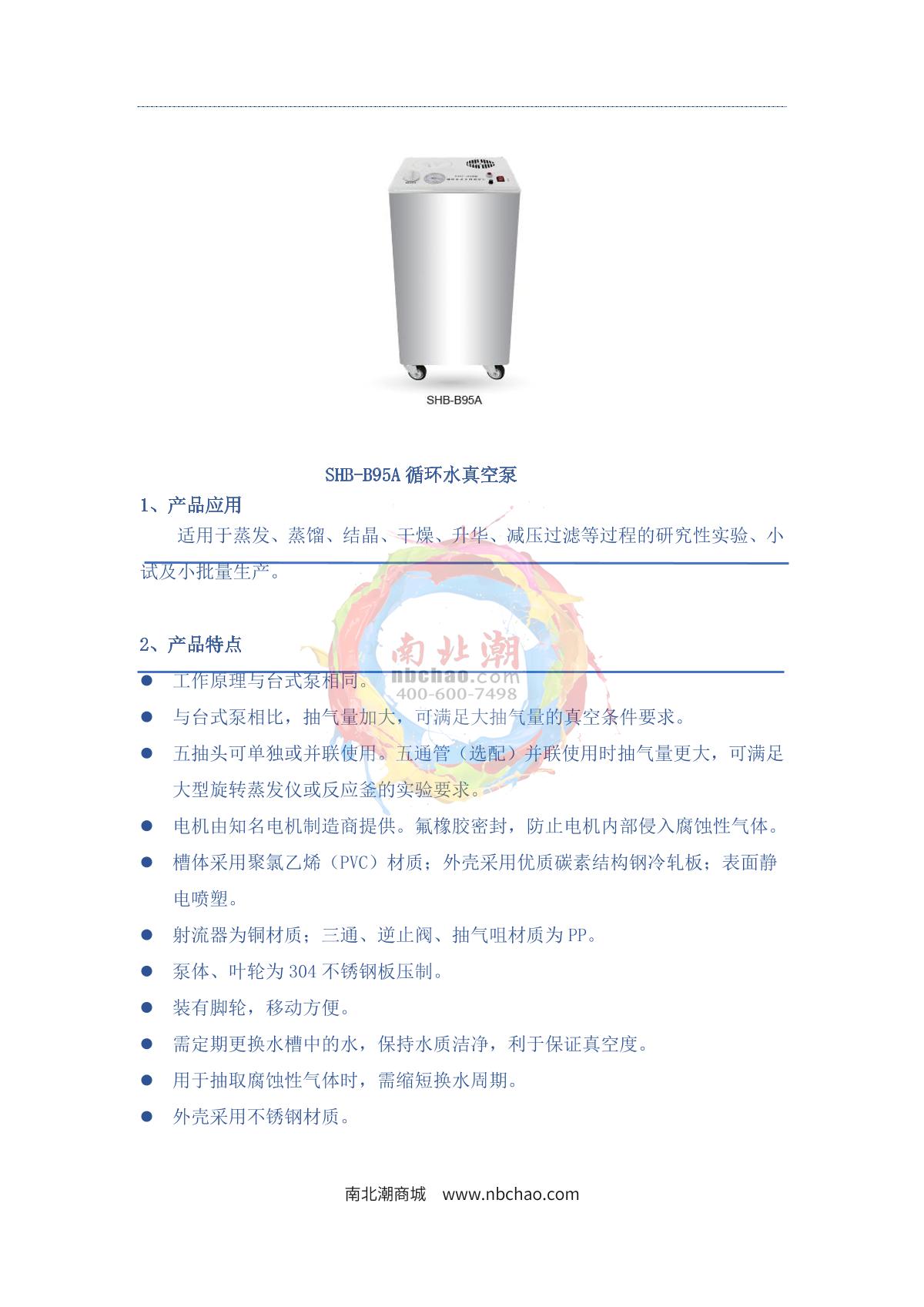 HuXi SHB-B95A Circulating water Vacuum Pump brochure