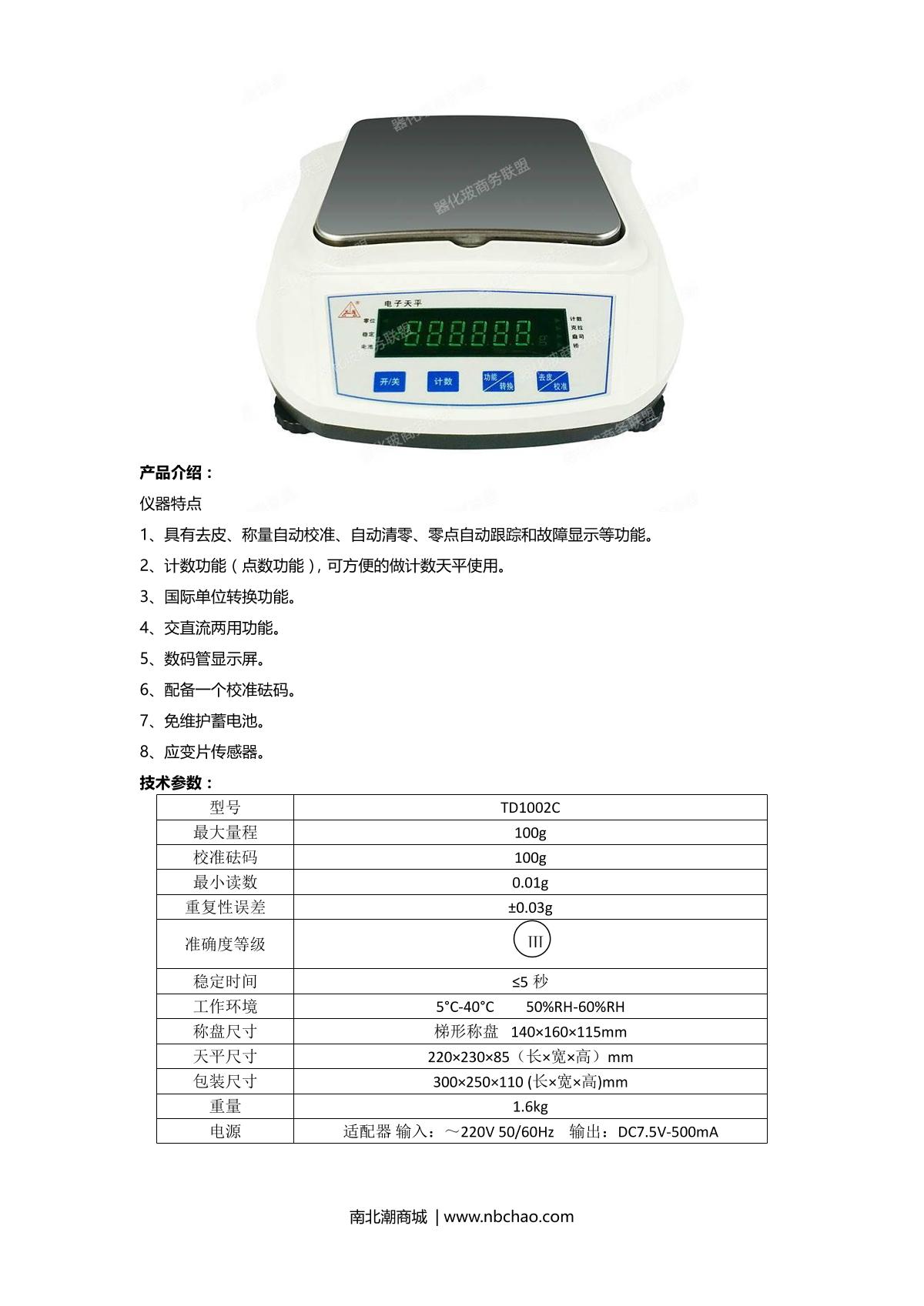 - 8TianMa TD60001 Electronic Balance brochure