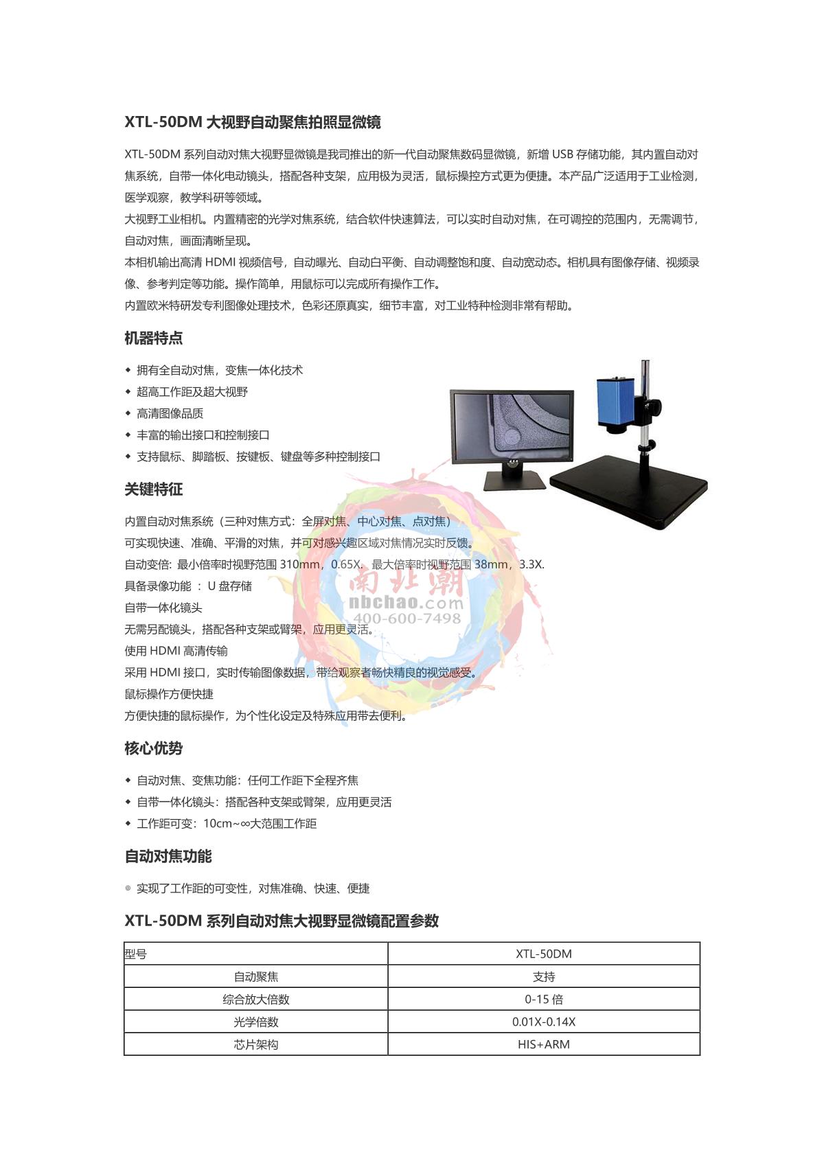 Teelen XTL-50DM Auto Focus Camera Microscope brochure