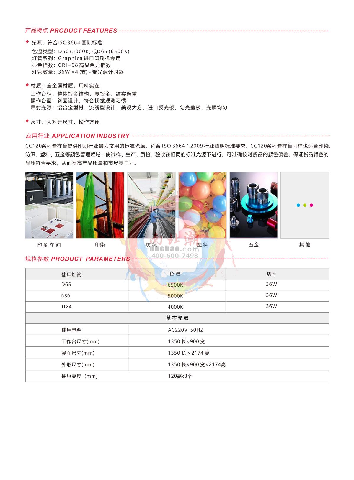 3NH CC120-W-2 Color Assessment Cabinet Hanging Dual Light source Color Assessment CabinetAC220V 50Hz1302*803*100mmColor temperature 6500K, Power 36W¥4400.0SE -