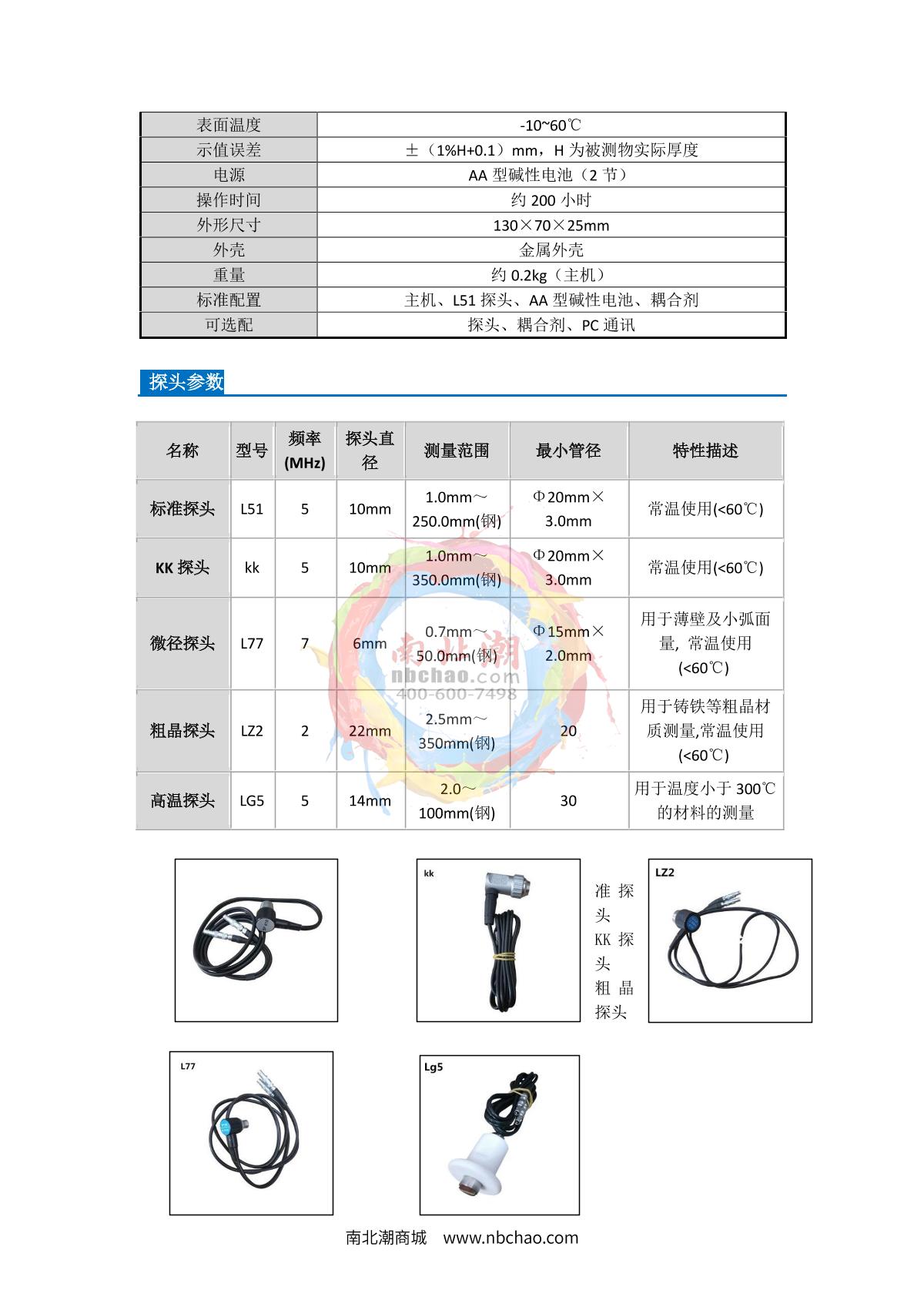 LEEB LBTQ703 Ultra-thin Piece Penetration Thickness Gaugesingle crystalOrdinary I-E mode: 0.15mm~ 30mm (steel) Penetration E-E mode: 0.5mm~ 10mm (steel), maximum penetration coating thickness 0.5mm15M, 20M single crystalSE -
