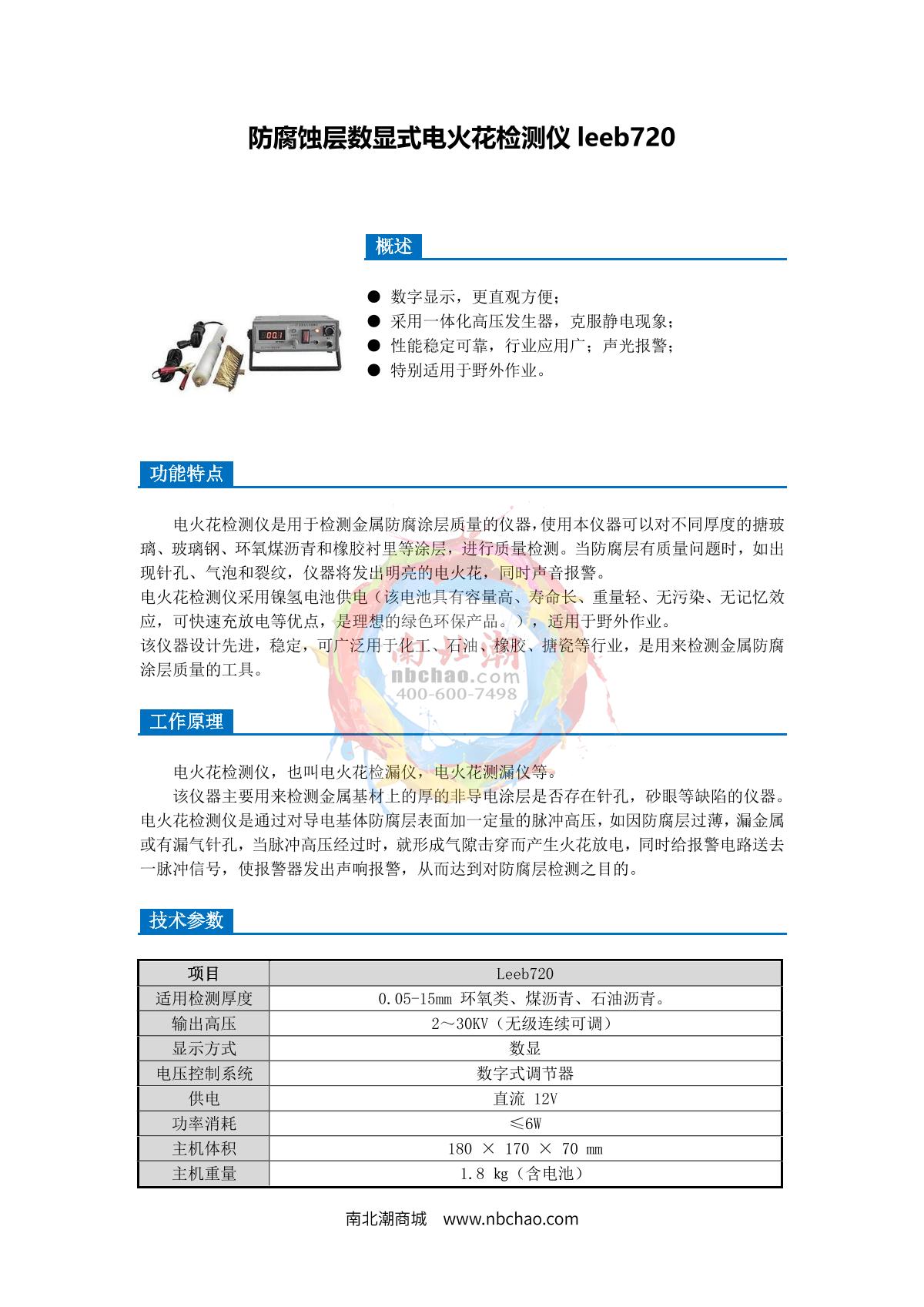LEEB710 anti-corrosion layer pointer spark Detector, measuring range 0.1~ 15mm0.1~15mm0.8~ 6KV, 5~ 30KV (stepless continuous adjustable) (optional)Pointer display Voltage, sound and light alarm¥2500.0SE -
