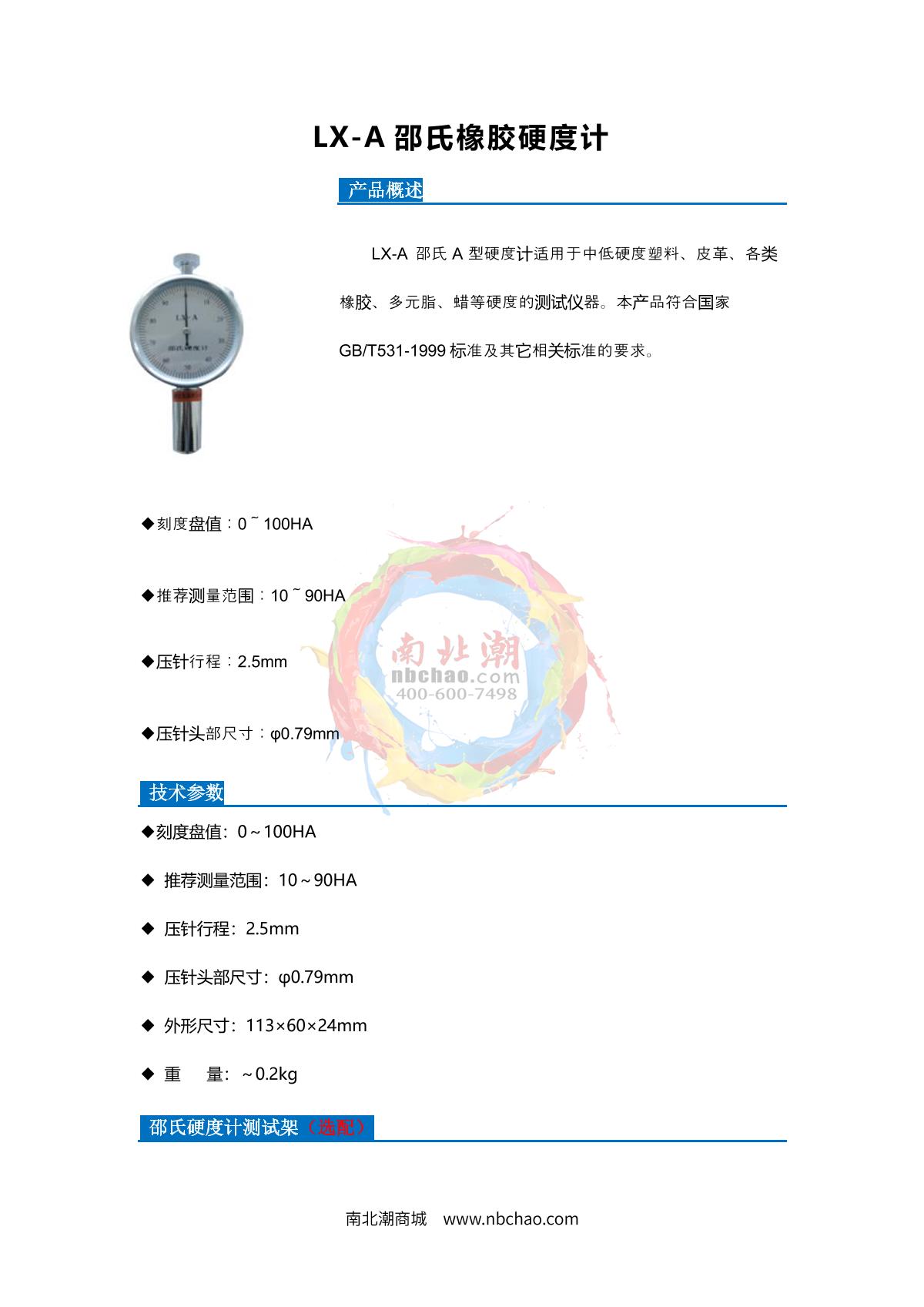 DUBAN DB20-LX-A Shore Durometer Type A 35 °/0.79/822 gf General Rubber/Soft Rubber0.1HA≤1HA20~90A¥1716.0SE -