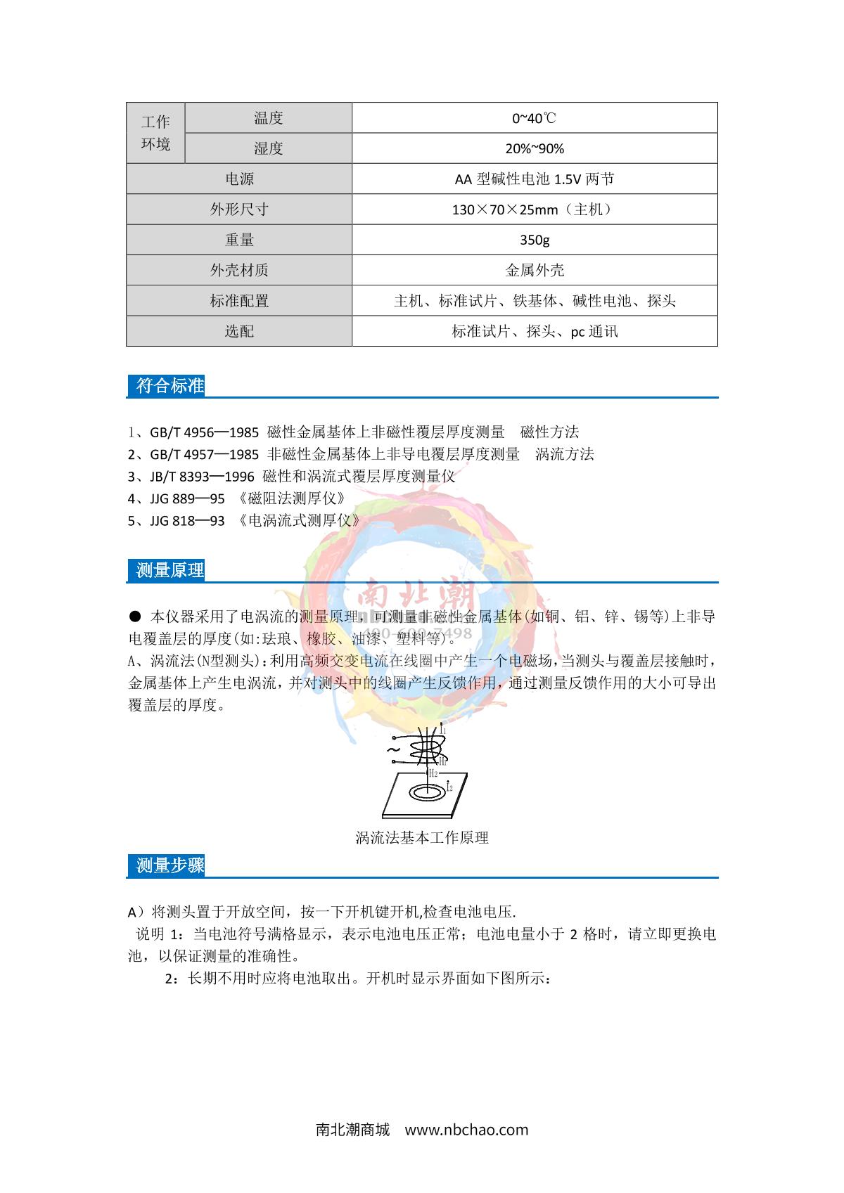 LANDTEK CM8826n dry Film Thickness Gauge measurement of non-metallic coatings on nonmagnetic metallic substratesEddy Current0~1250μm±3%¥1530.0SE -