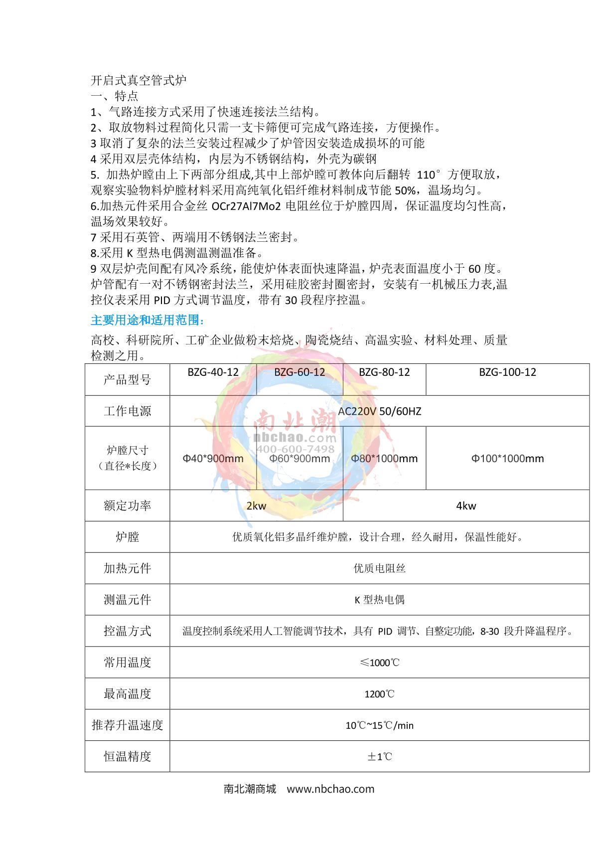 BoZhen BZG-100-12 Open vacuum tube furnace brochure