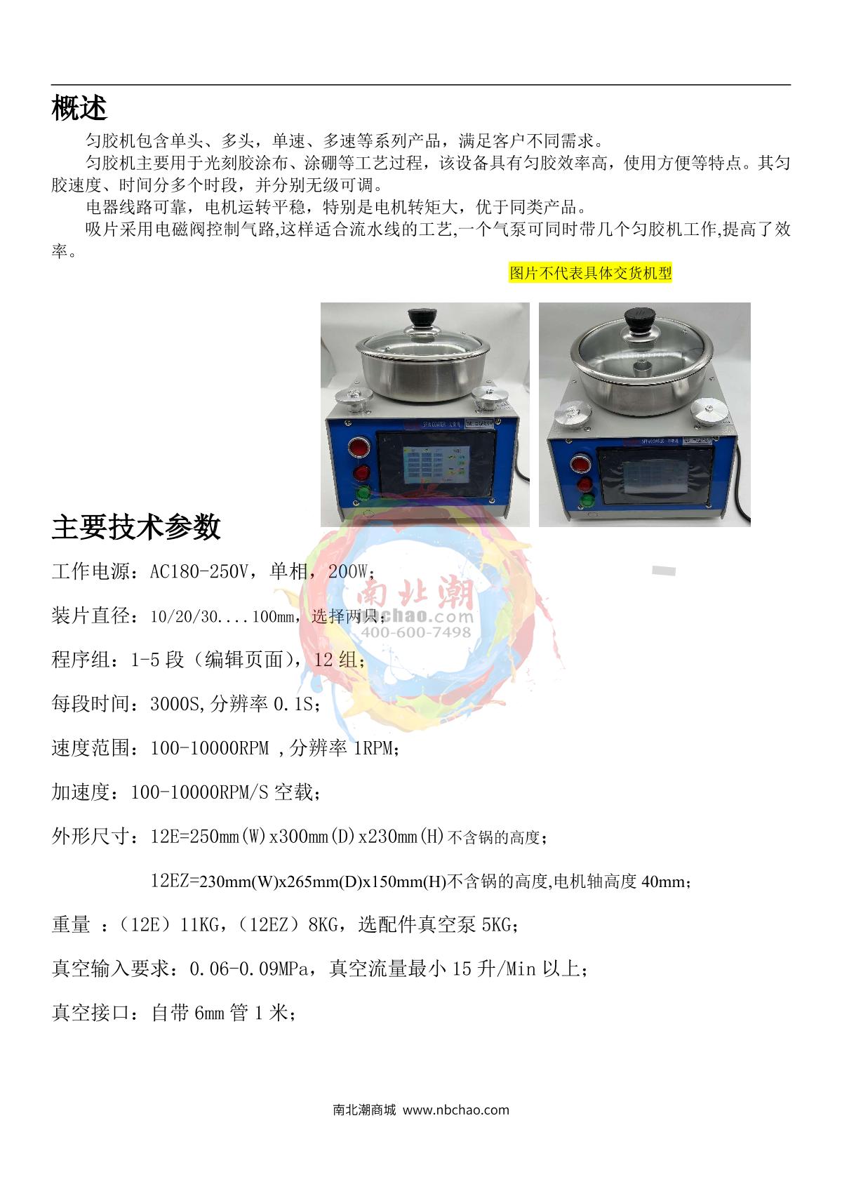 CHINA 12E spin coating machine, touch screen, test spin coating machineAC180-250V, single phase200WSelect 10/20/30... 100mm, choose two¥8800.0SE -