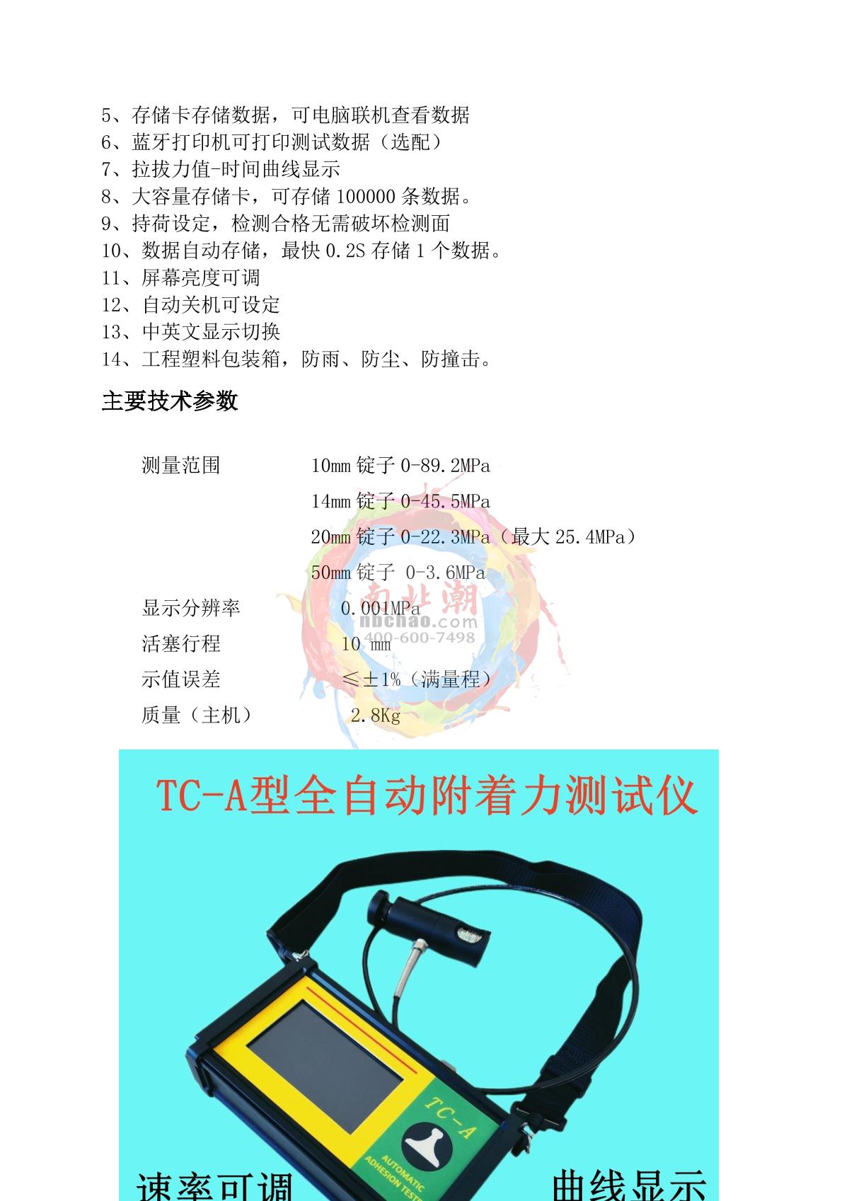 TIANDIXINGHUO TC-A20 Automatic Adhesion Tester with 20mm kit0-22.3 MPa (25.4 MPa max)0.001MPa10mm¥11690.0SE -