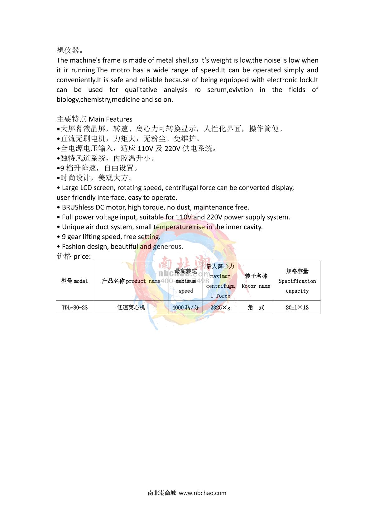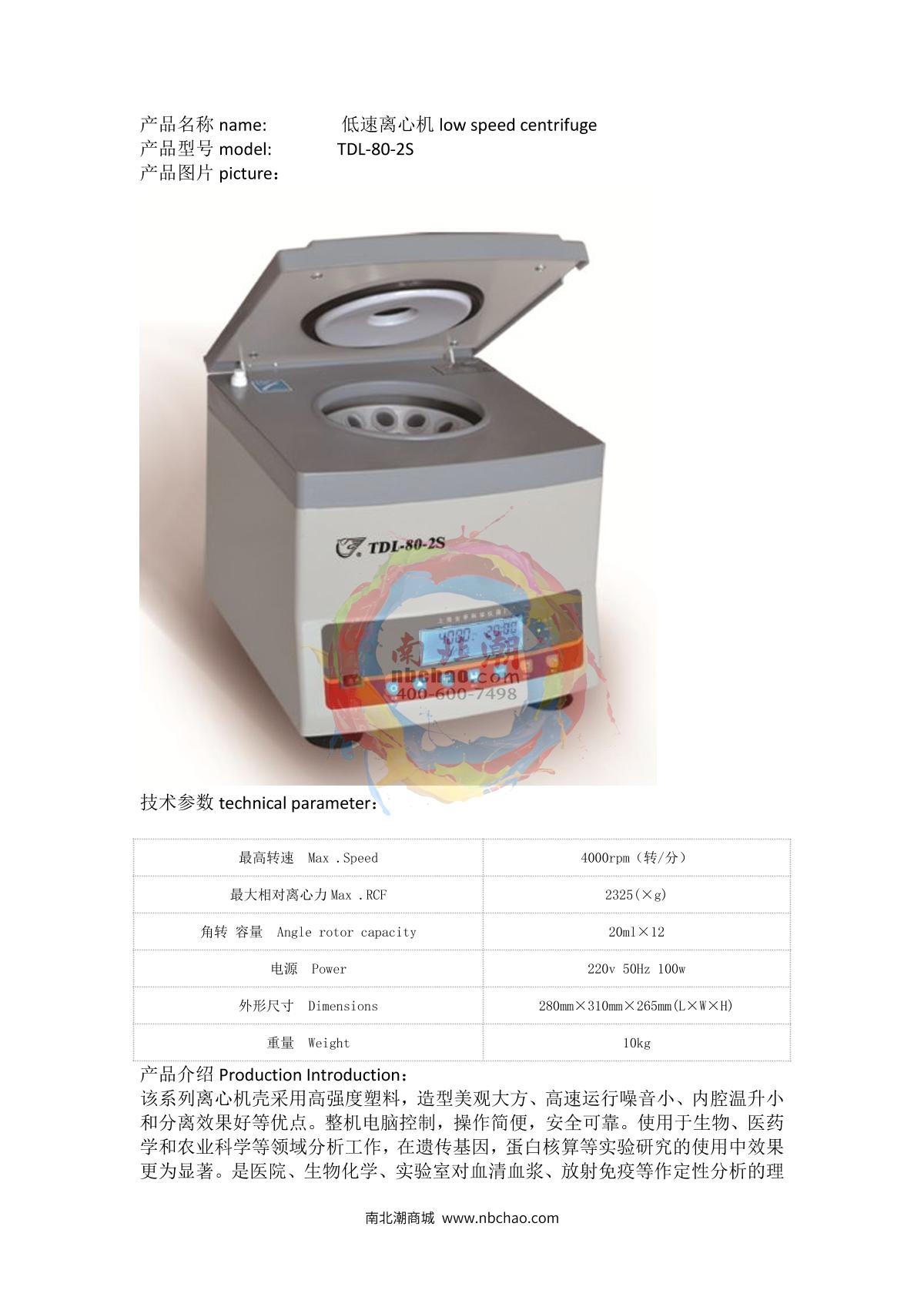 anke TDL-80-2S Low Speed Centrifuge brochure
