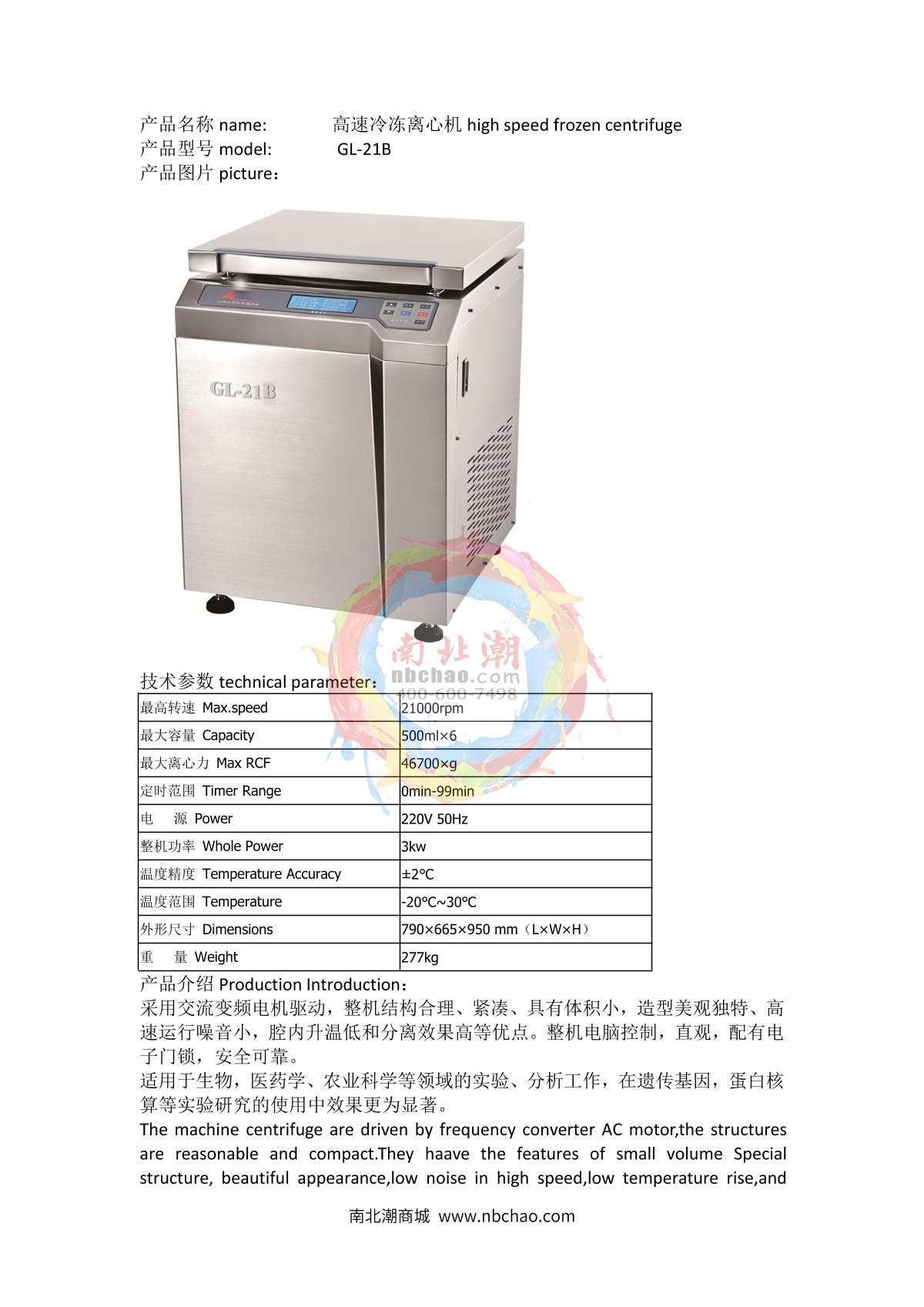 anke GL-21B High Speed Refrigerated Centrifuge brochure