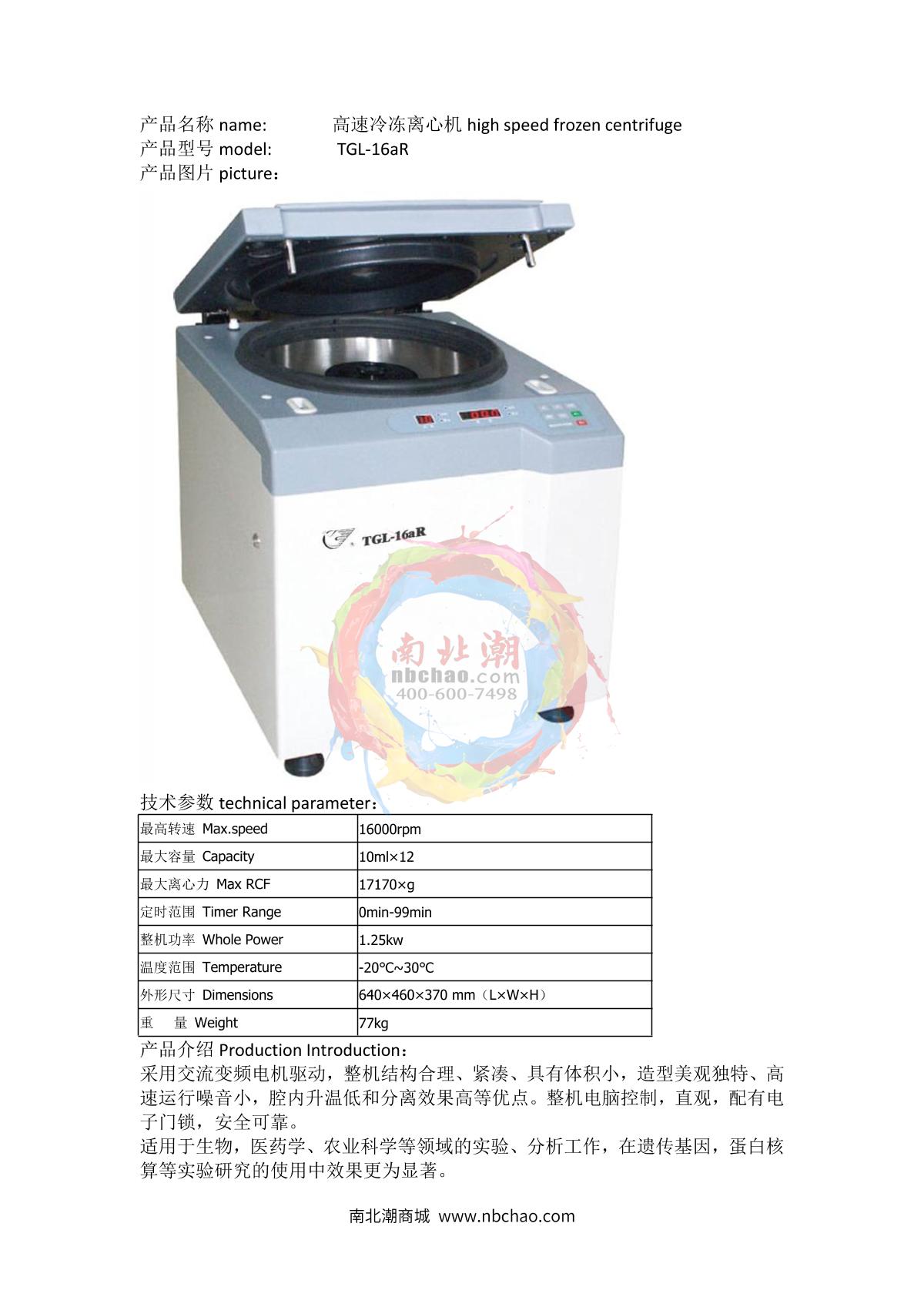 anke TGL-16aR High Speed Refrigerated Centrifuge brochure