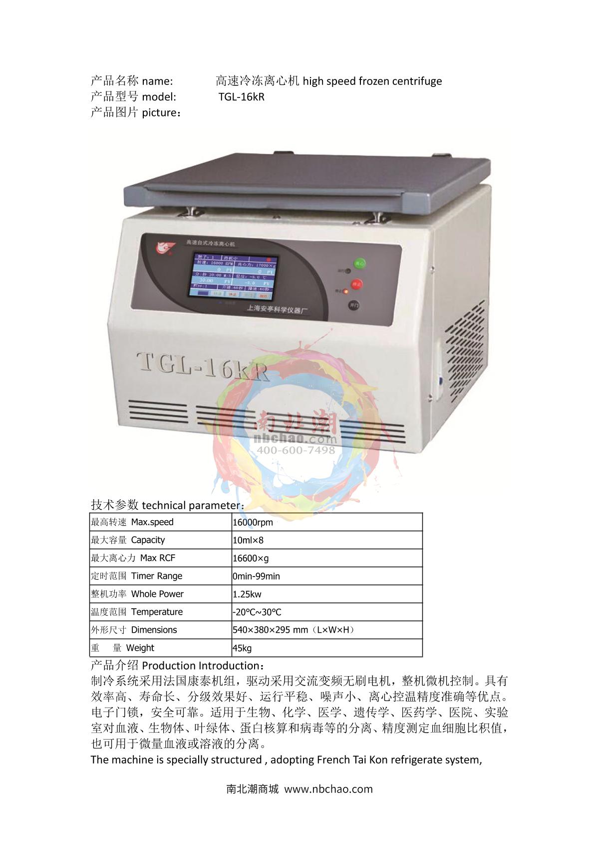 anke TGL-16kR High Speed Refrigerated Centrifuge brochure