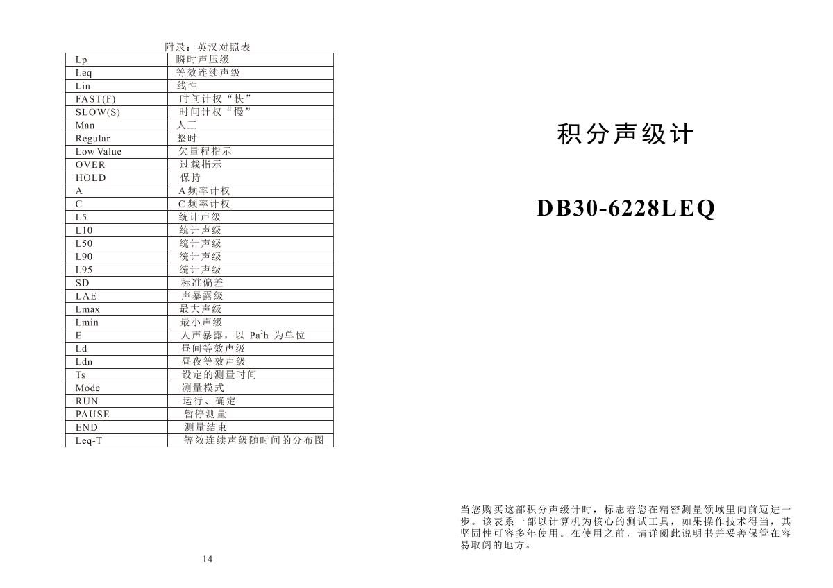 Duban DB30-6228LEQ Integrating sound level meter Manual,OI