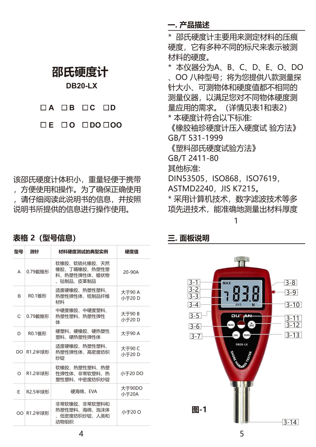 Duban DB20-LX-D D Shore Shore Durometer Manual,OI