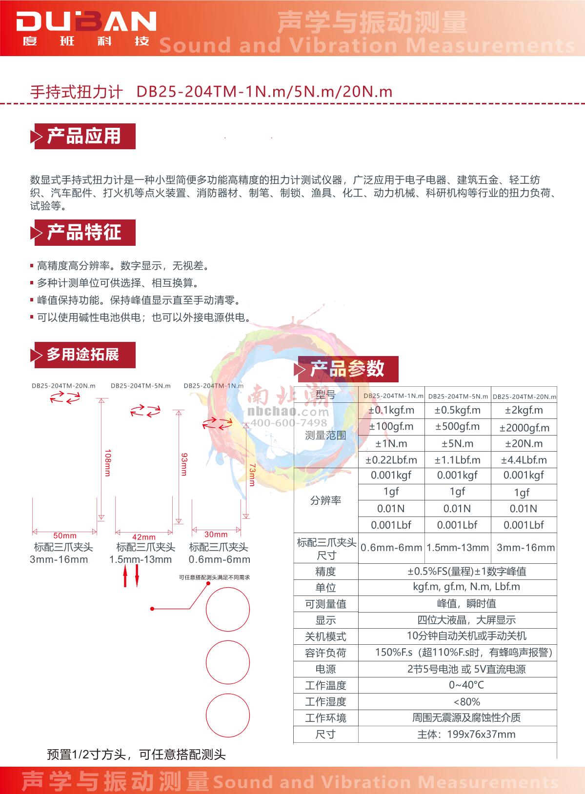 Duban DB25-204TM-20Nm Handheld Torque Gauge brochure
