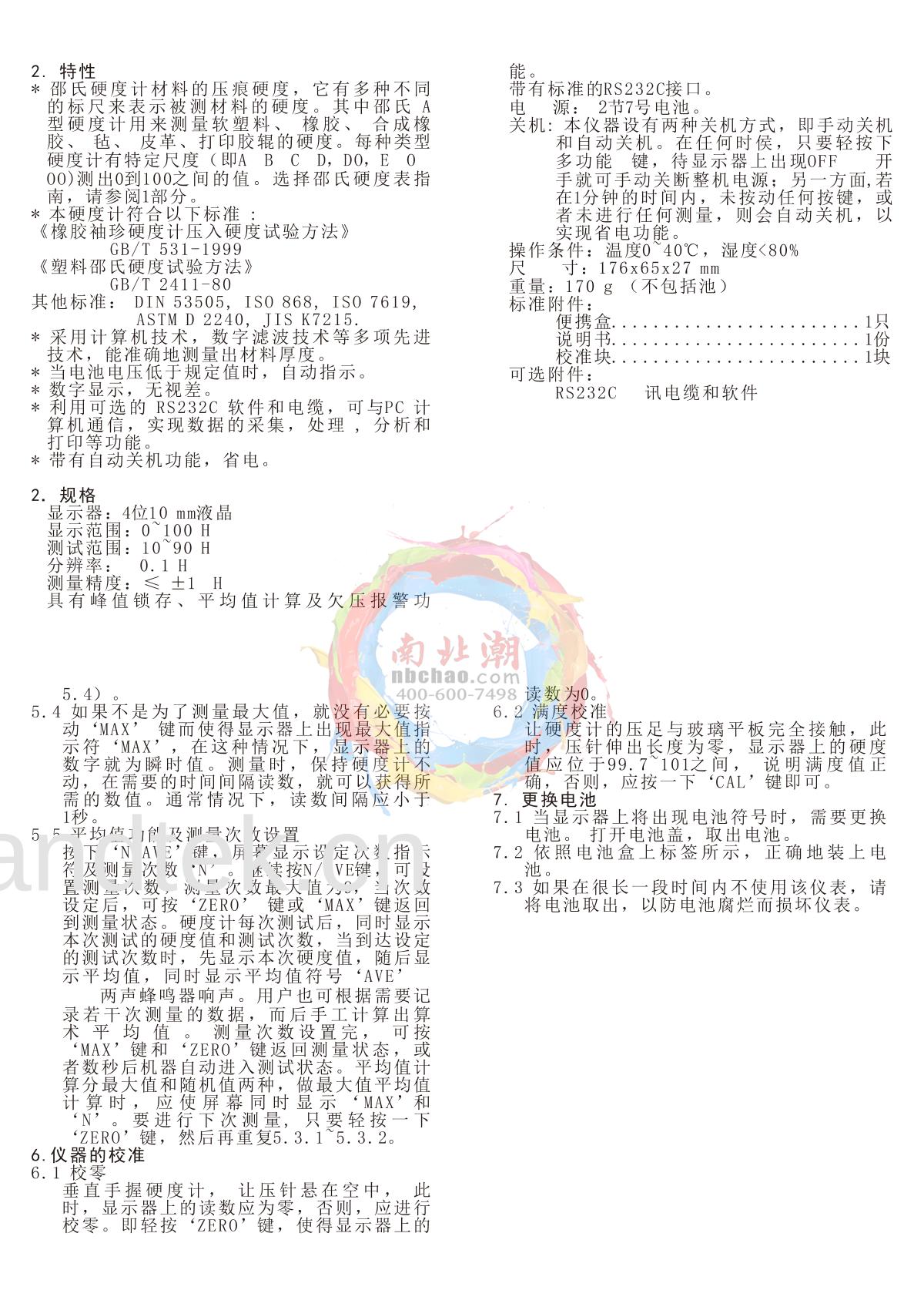 - 7HBO LX-D-2 Shore Shore Durometer (double needle) Manual