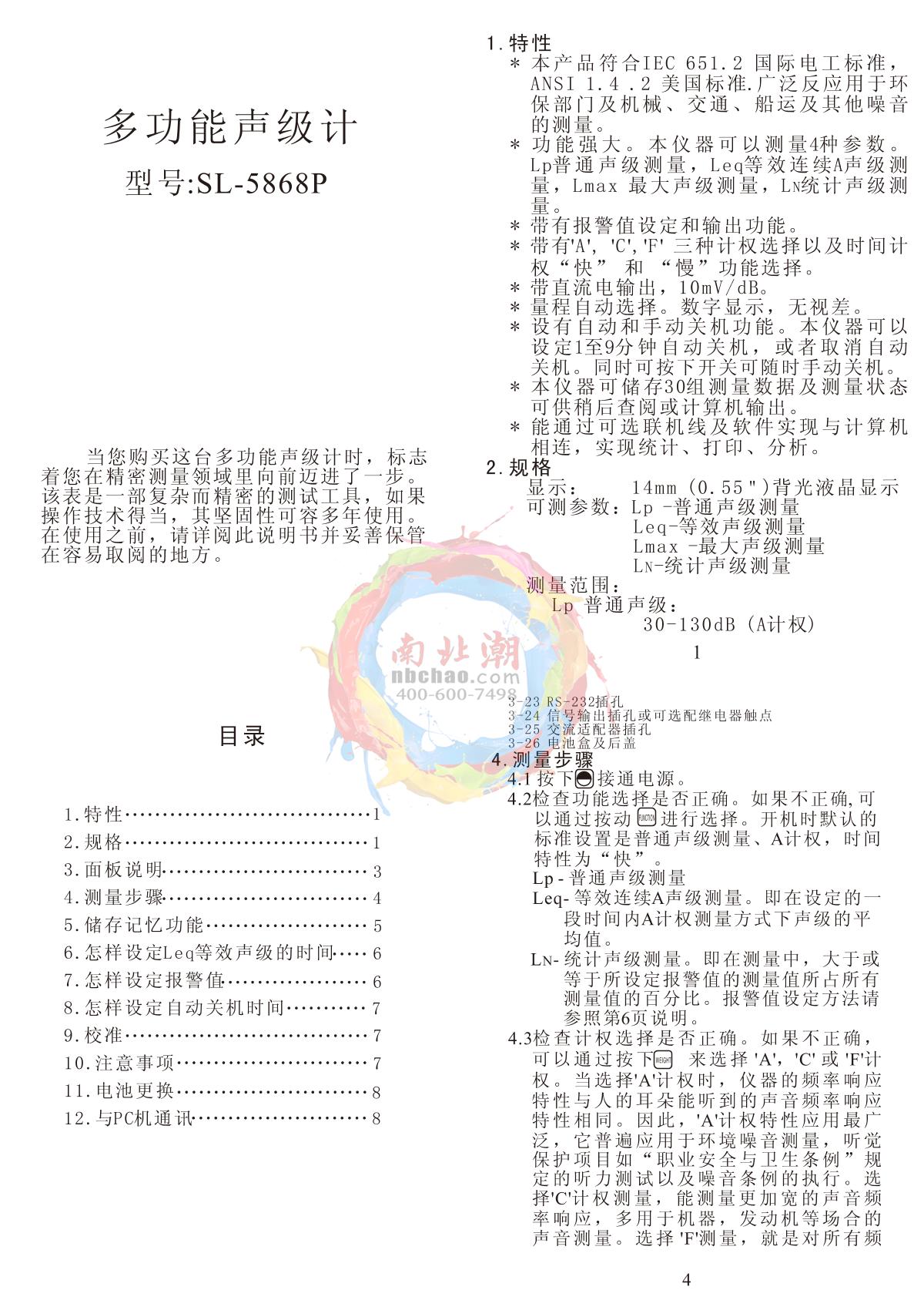- 4Duban DB30-6226N Precision ordinary sound level meter Manual