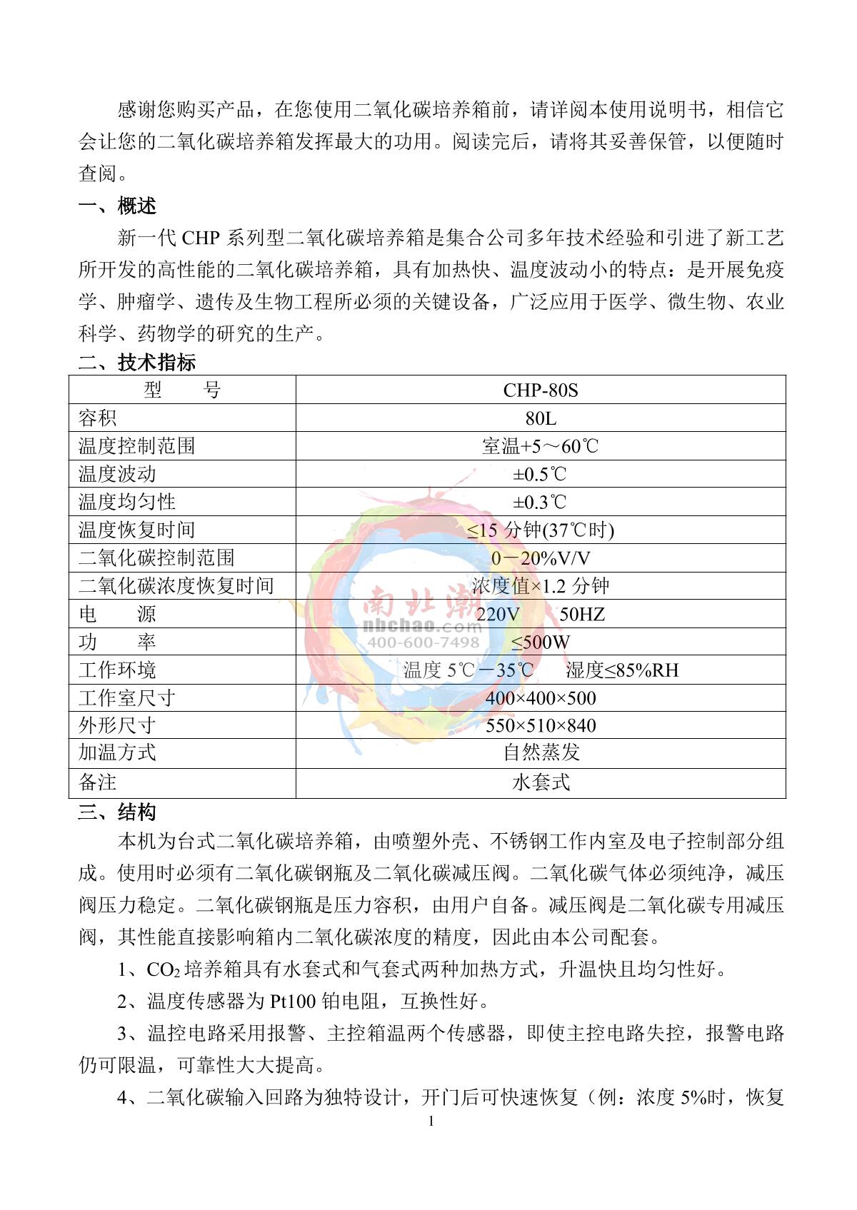 Factory CHP-80S Co2 Incubator brochure