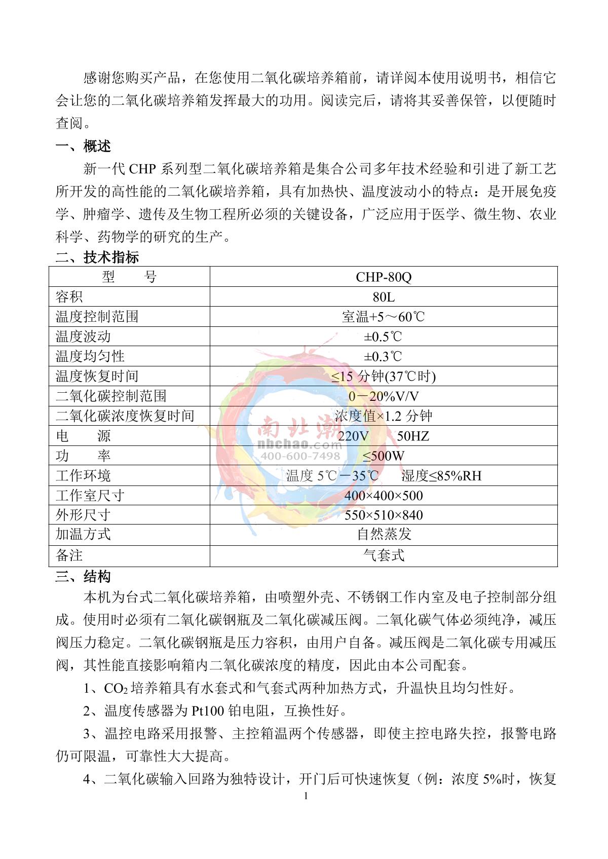Factory CHP-80Q Co2 Incubator Manual,OI